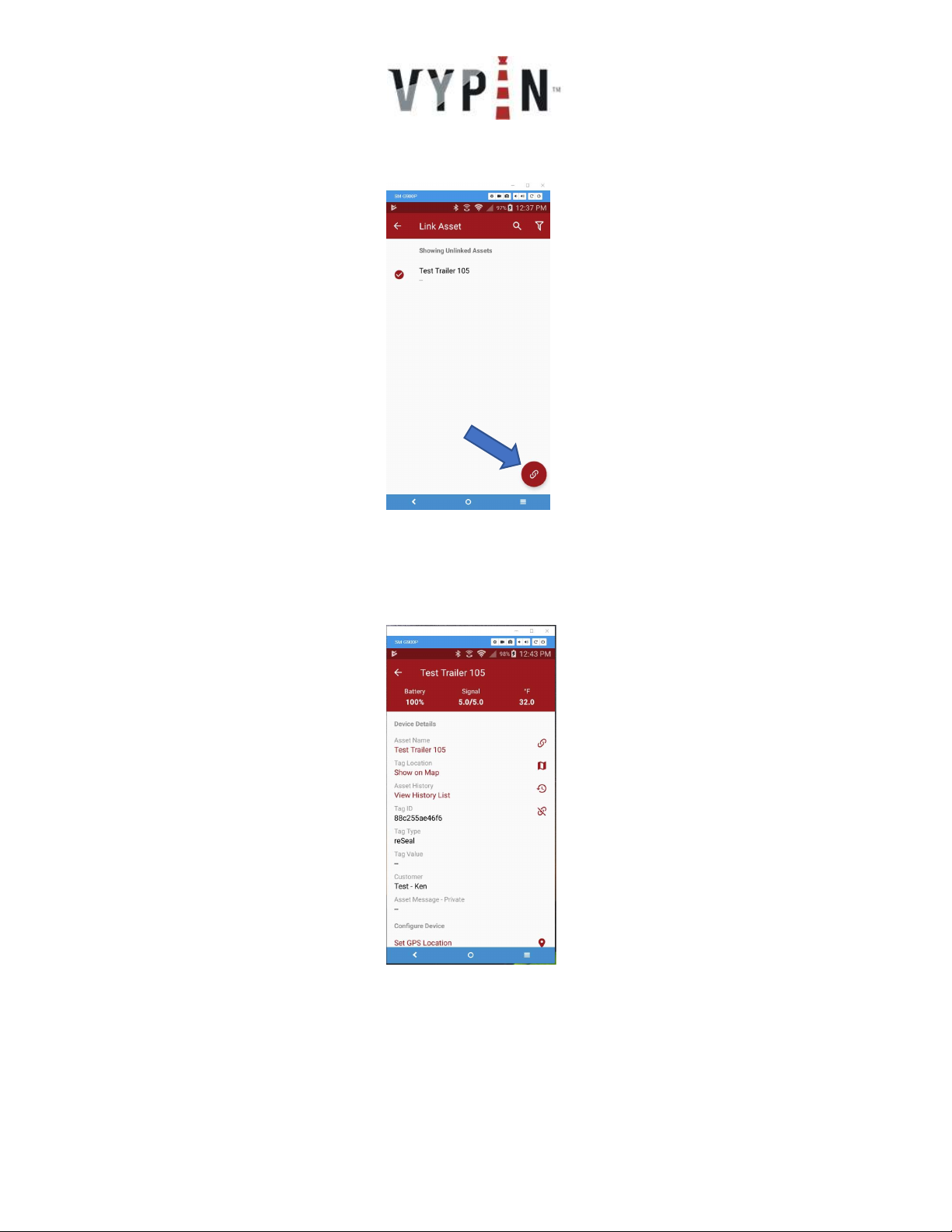 6. The next screen displayed will show the user that the tag has been linked to the load.