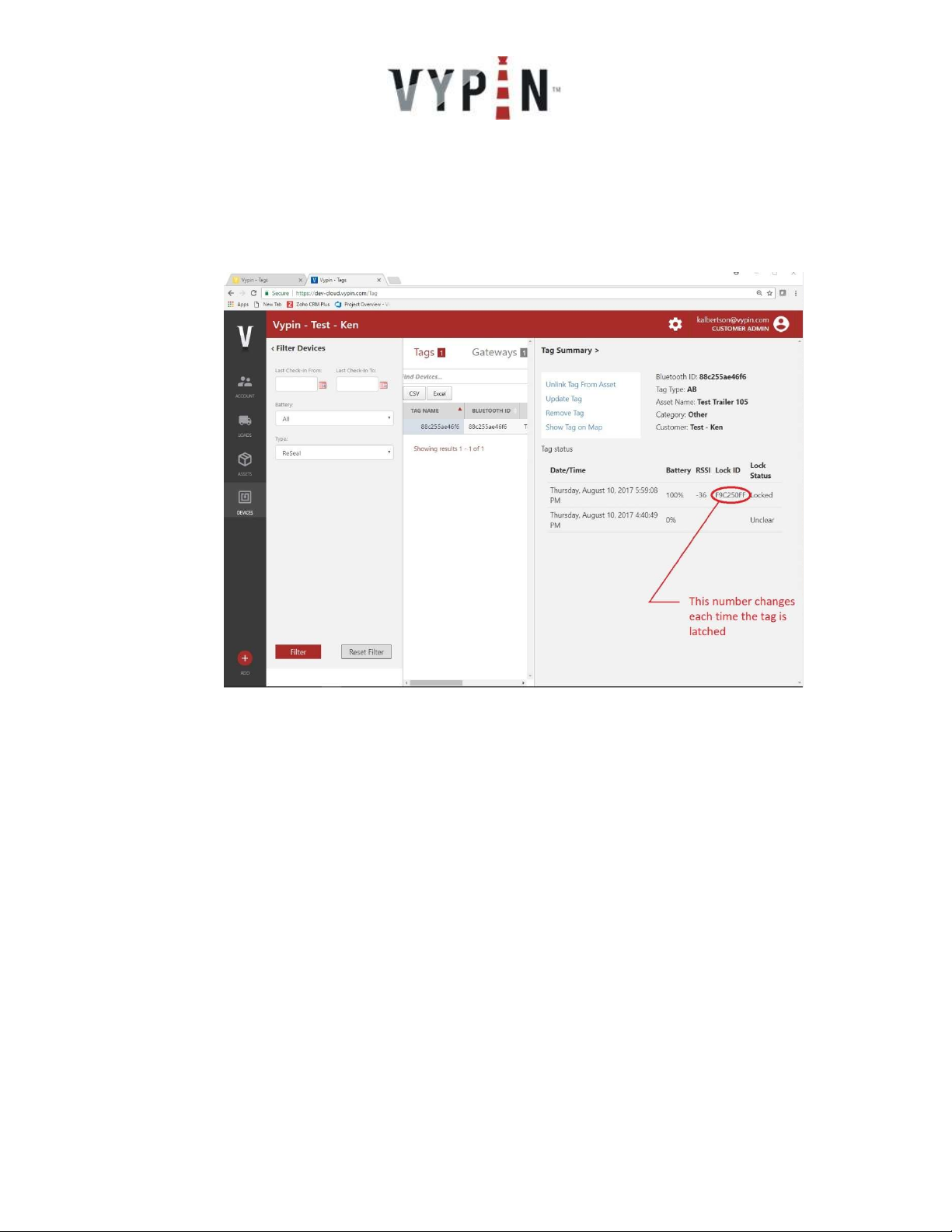 7. When the filter is activated the Lock ID can be observed along with the lock Status. The