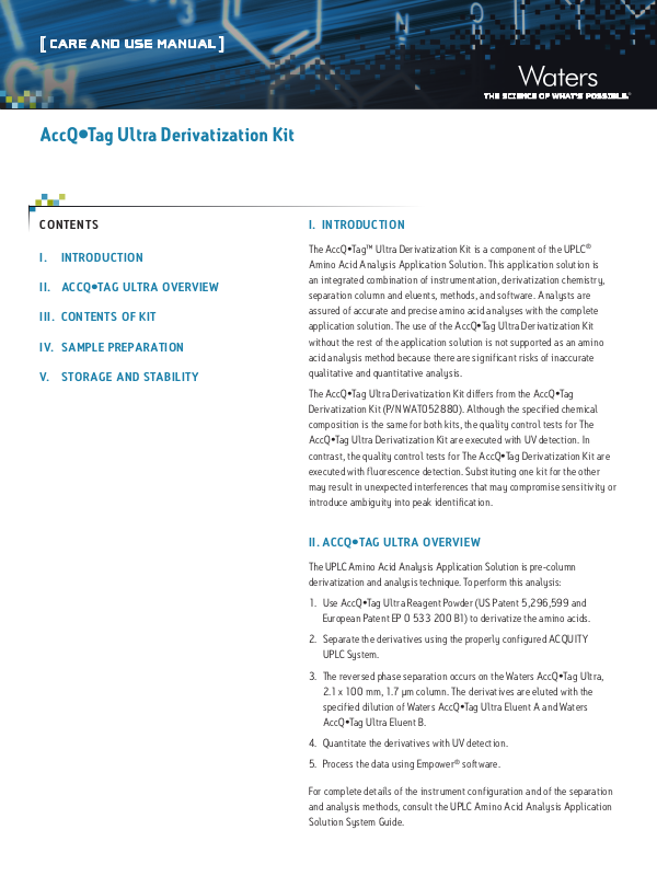 AccQ•Tag Ultra Derivatization Kit are executed with UV detection. In