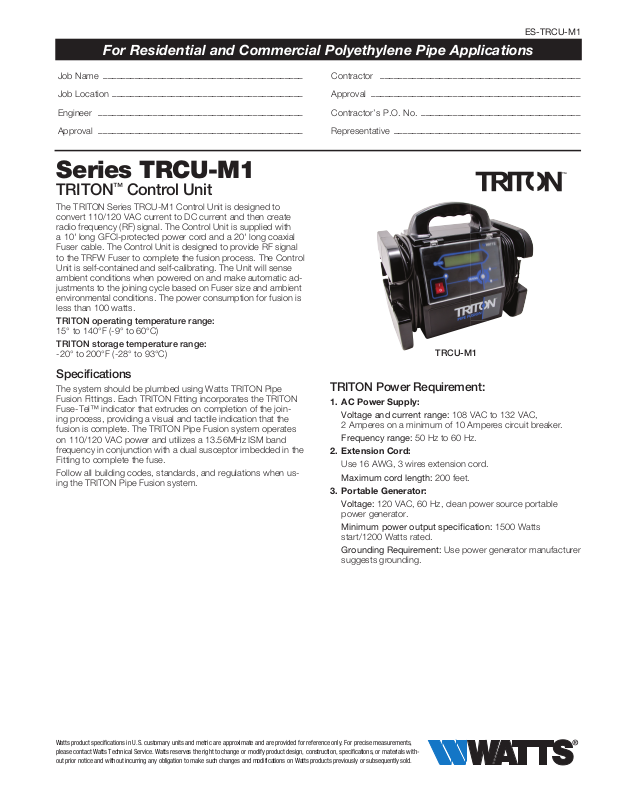 please contact Watts Technical Service. Watts reserves the right to change or modify product design, construction, specifications, or materials without prior notice and without incurring any obligation to make such changes and modifications on Watts products previously or subsequently sold.