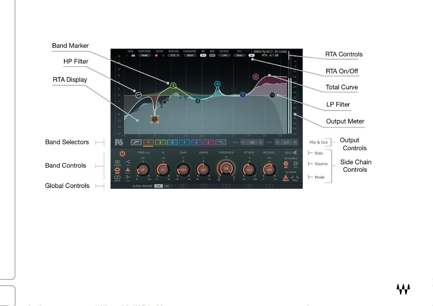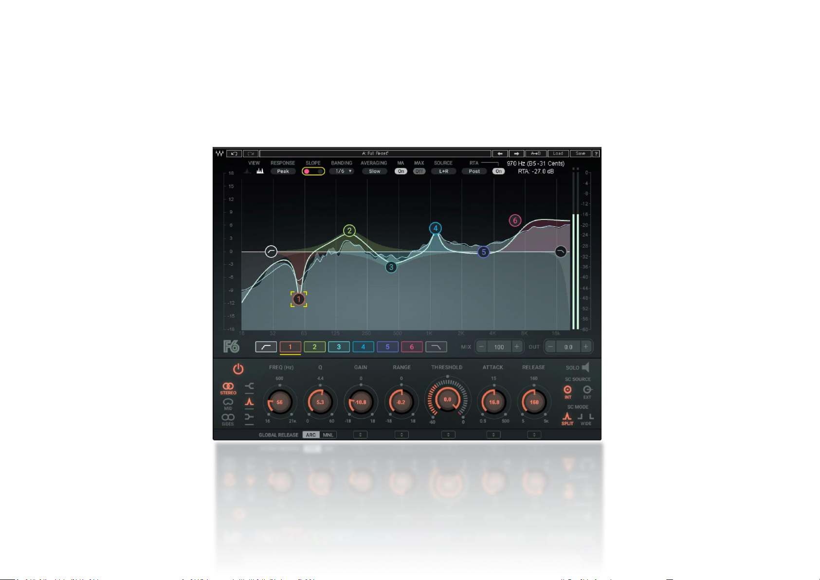 F6 est un égaliseur dynamique qui dispose de six filtres paramétriques flottants entièrement réglables avec dynamique, ainsi que