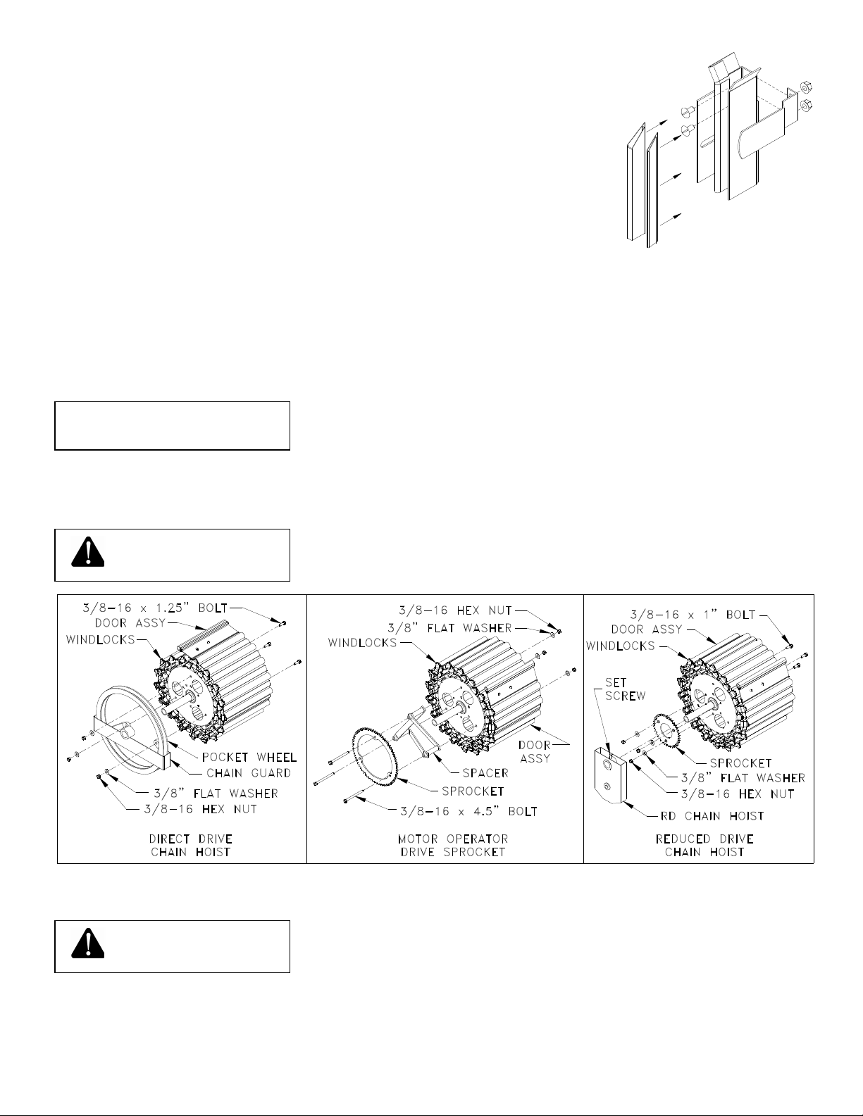 9. This manual is not intended to provide "take-down" instructions for existing doors. Consult your local door