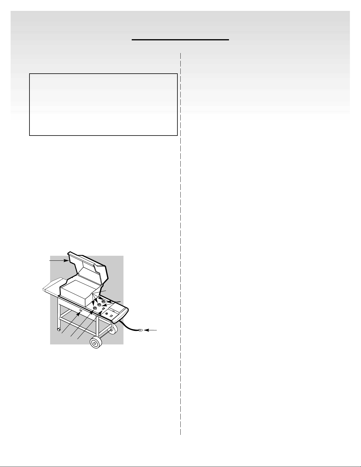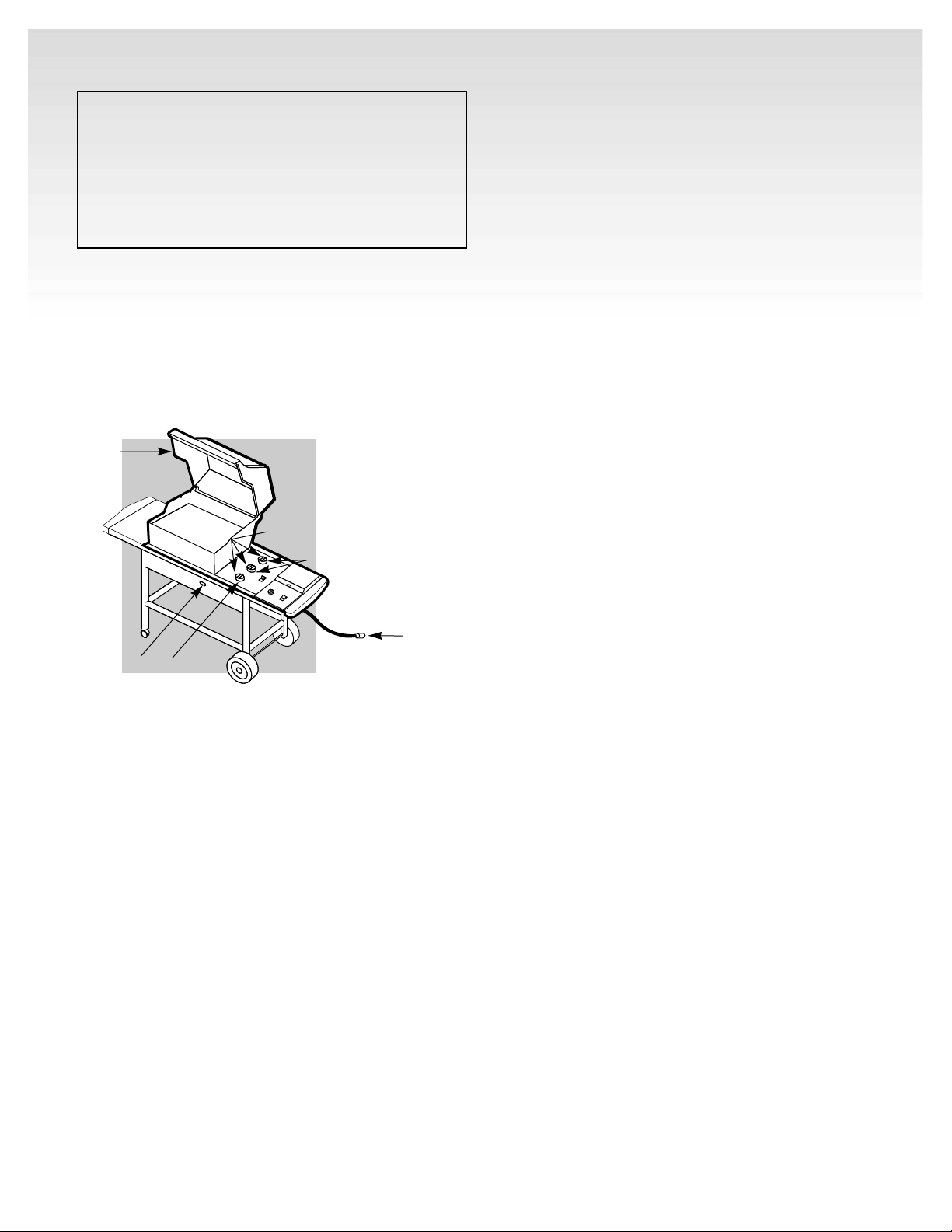 Do not store a spare or disconnected liquid propane cylinder under or near this barbecue.
