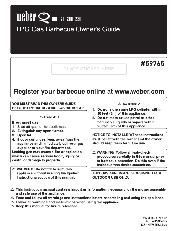 m Do not use the Weber® Q® barbecue in a vehicle trunk,