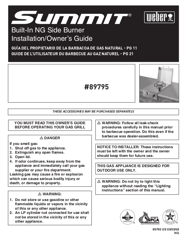 GUÍA DEL PROPIETARIO DE LA BARBACOA DE GAS NATURAL - PG 11