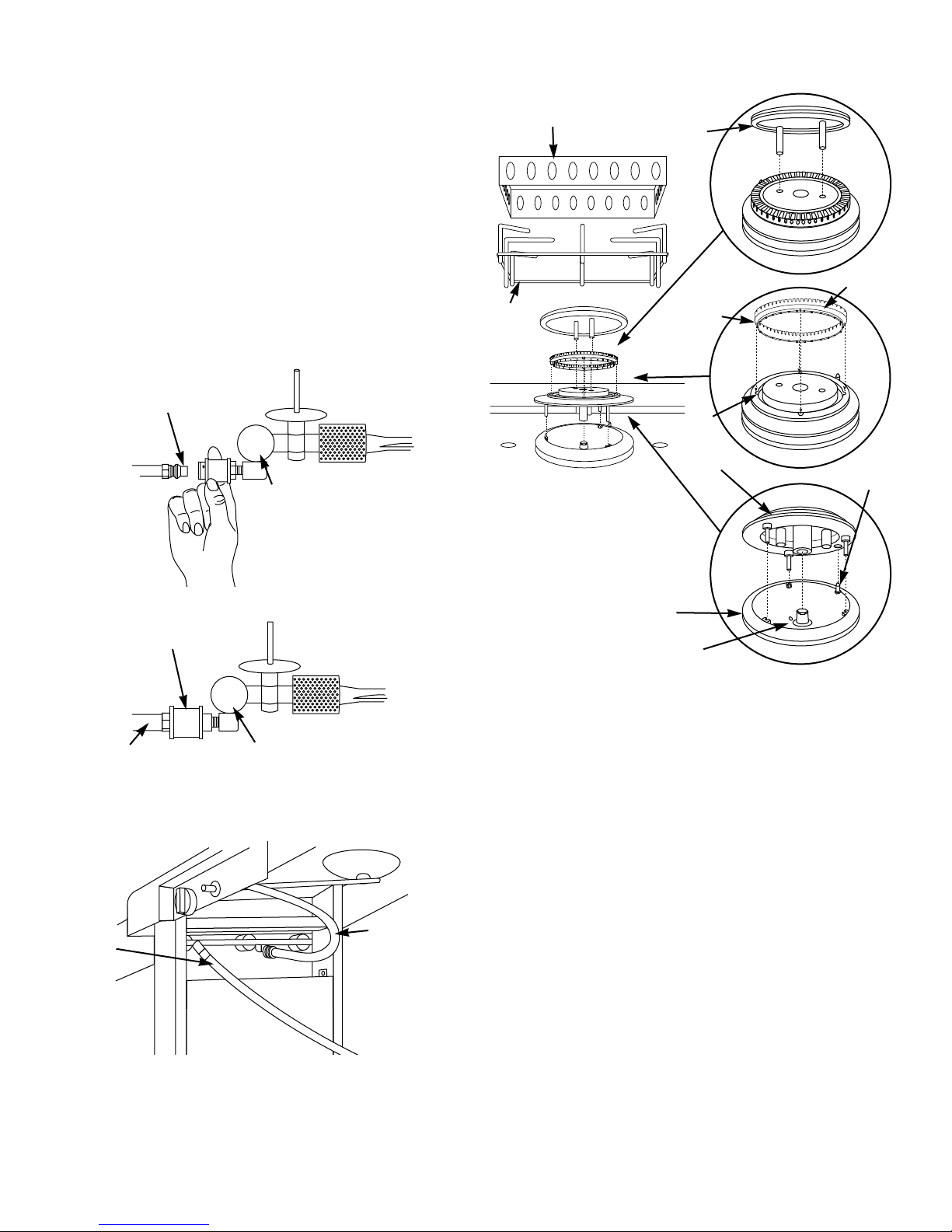 WARNING: Set the burner ring onto the burner head with the slots facing up. Rotate the burner ring until the four lugs on the burner ring are seated in the four slots on the burner head. Fi g ur e 1 5 ( b) .