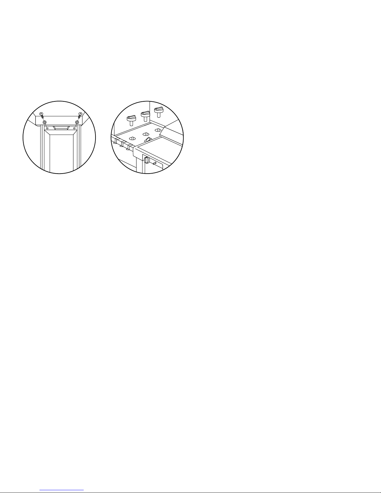 Insert the left work surface tabs in the slots to the left of the cooking box. Figure 16 (a). Slip washers on the bolts and insert the bolts as shown. Tighten. Figure 16 (b).