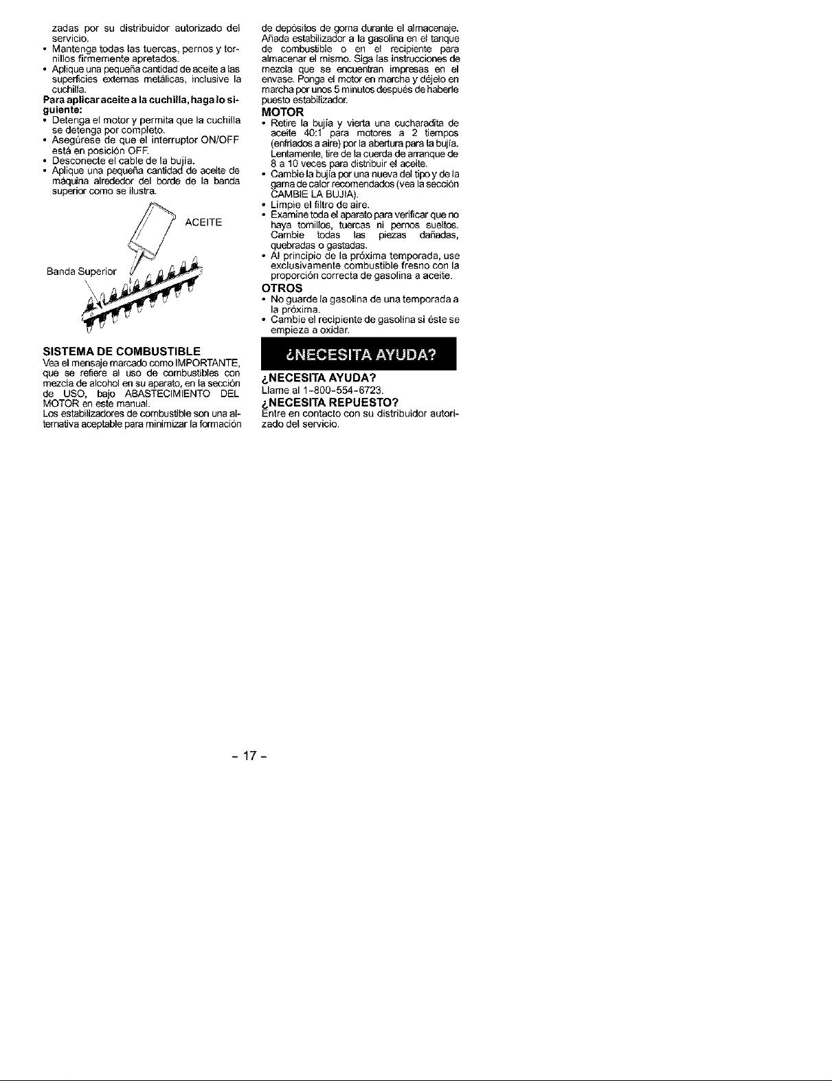 1-800-554-6723. MANTENIMIENTO, RE-