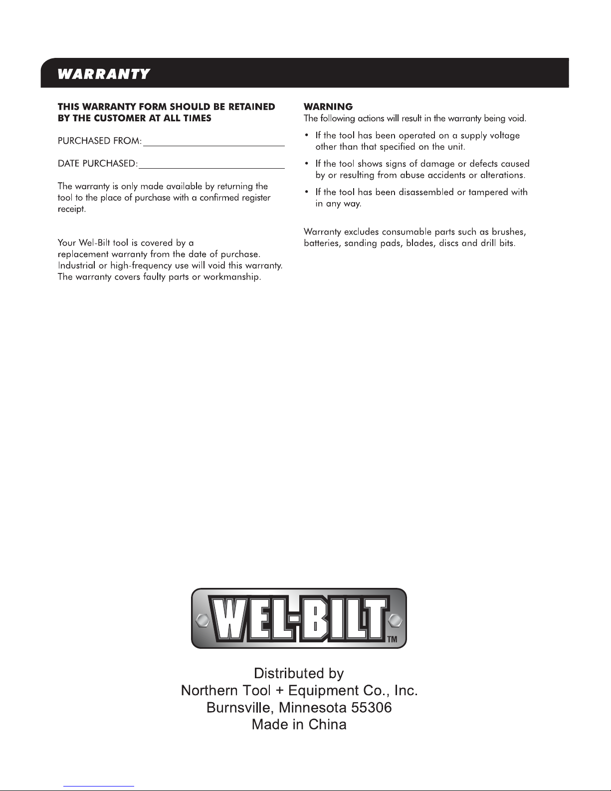 3. CAUTION: To reduce risk of injury, charge only Wel-Bilt Battery Cartridge. Other types