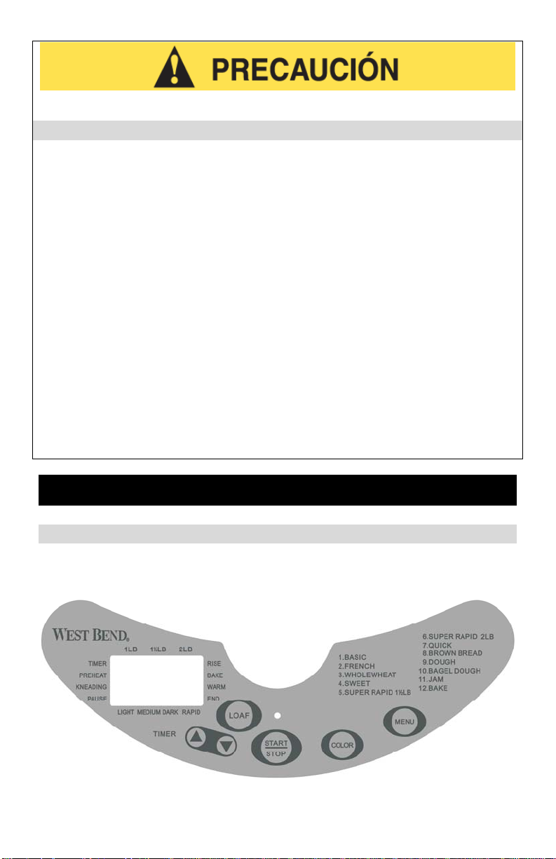 • Do not use your breadmaker with a converter or transformer. This will destroy
