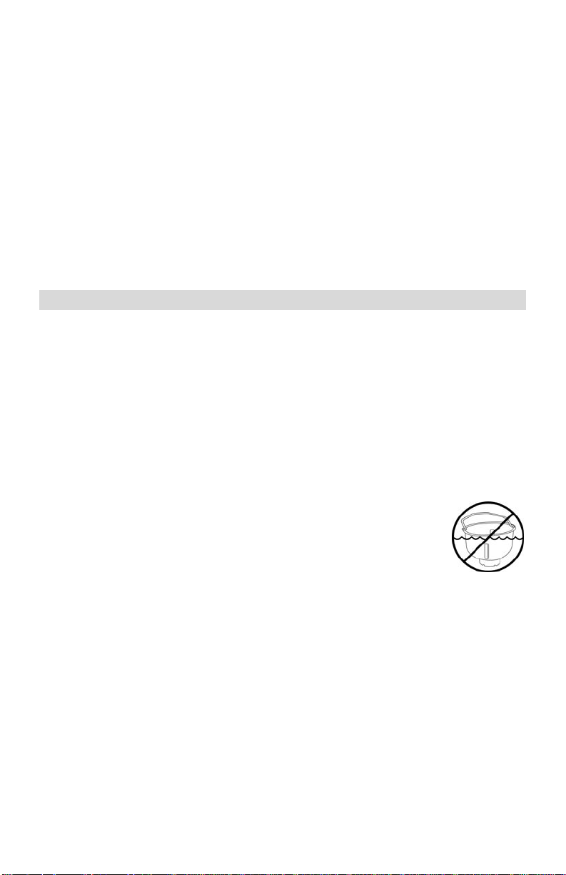• To protect against electric shock do not immerse cord, plugs, or other electric