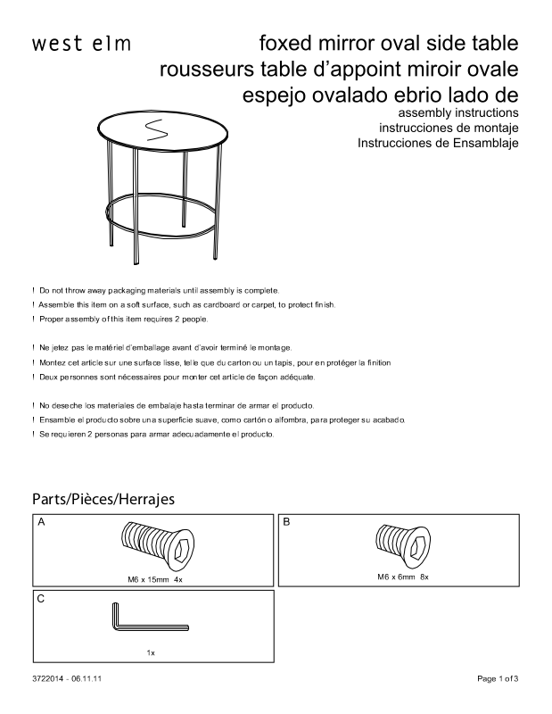 West Elm Foxed Mirror Side Table Assembly Instruction