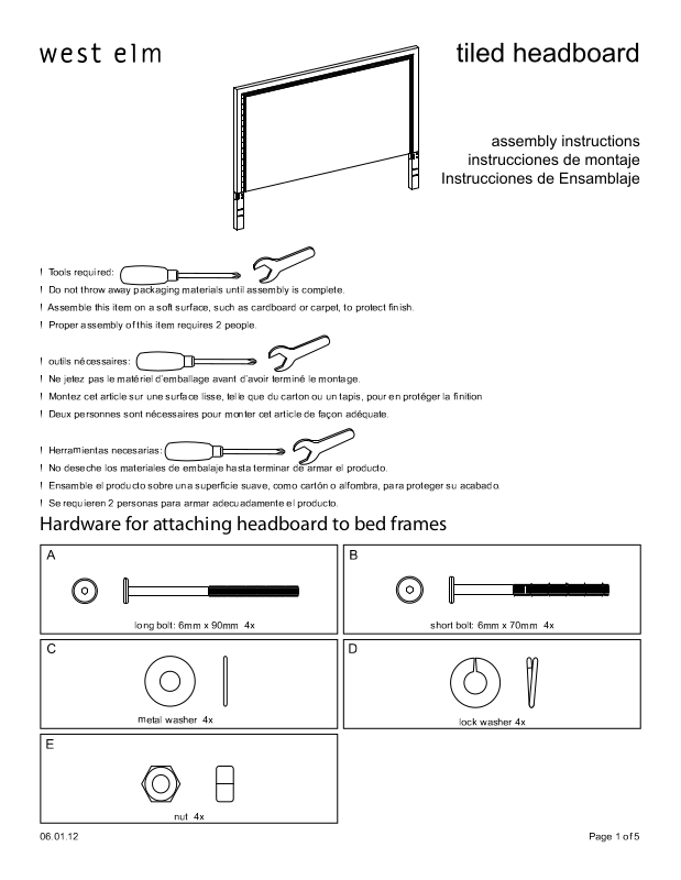 West Elm Wood Tiled Headboard Assembly Instruction