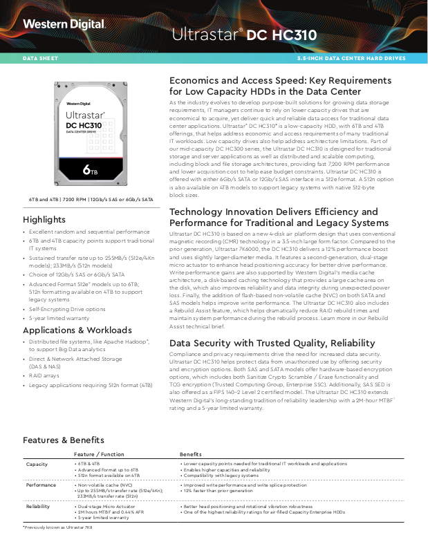 our mid-capacity DC HC300 series, the Ultrastar DC HC310 is designed for traditional
