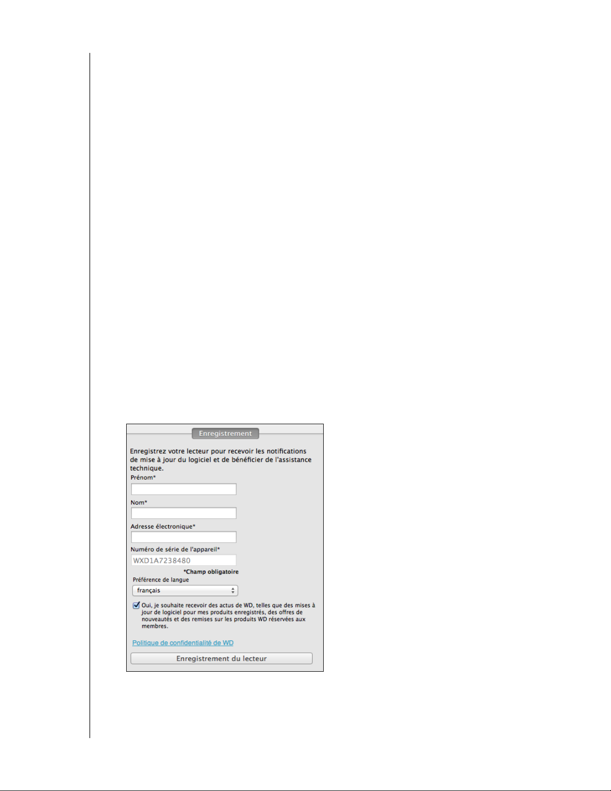 • Enregistrement du produit – Enregistrez votre produit WD pour obtenir les dernières