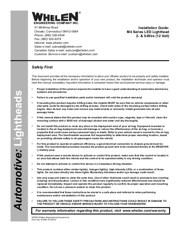 This document provides all the necessary information to allow your Whelen product to be properly and safely installed.