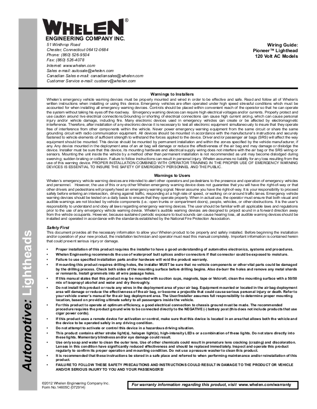 For warranty information regarding this product, visit www.whelen.com/warranty