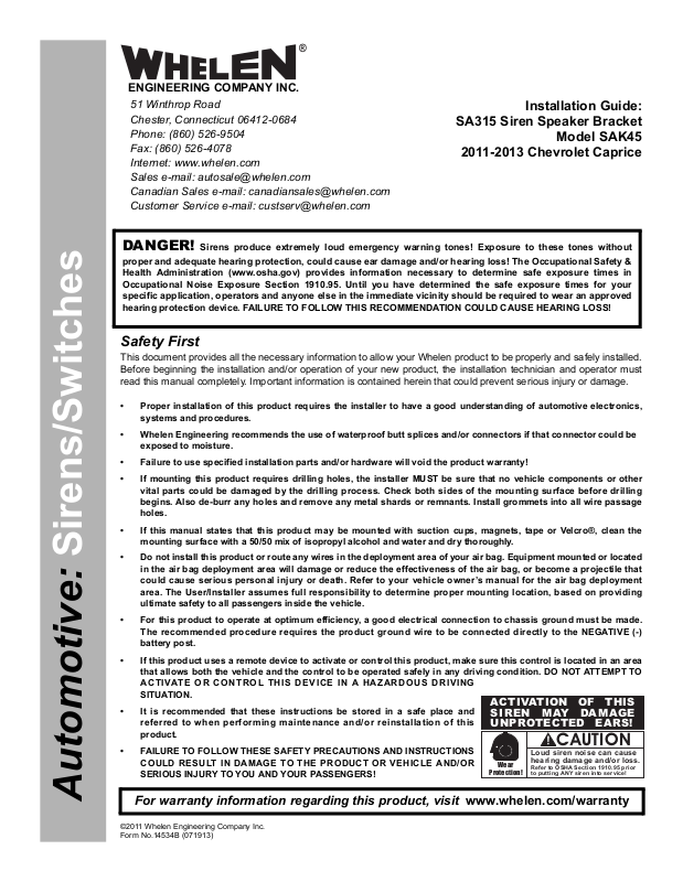 This document provides all the necessary information to allow your Whelen product to be properly and safely installed.