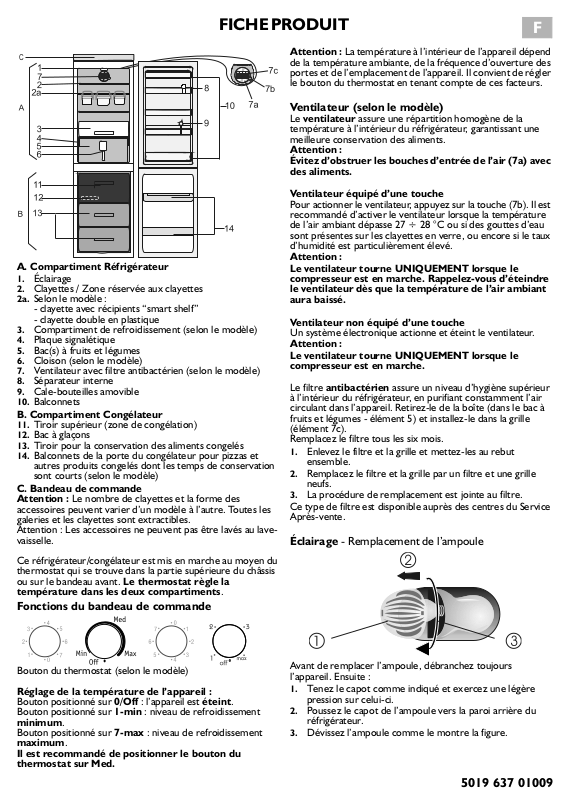Pour actionner le ventilateur, appuyez sur la touche (7b). Il est