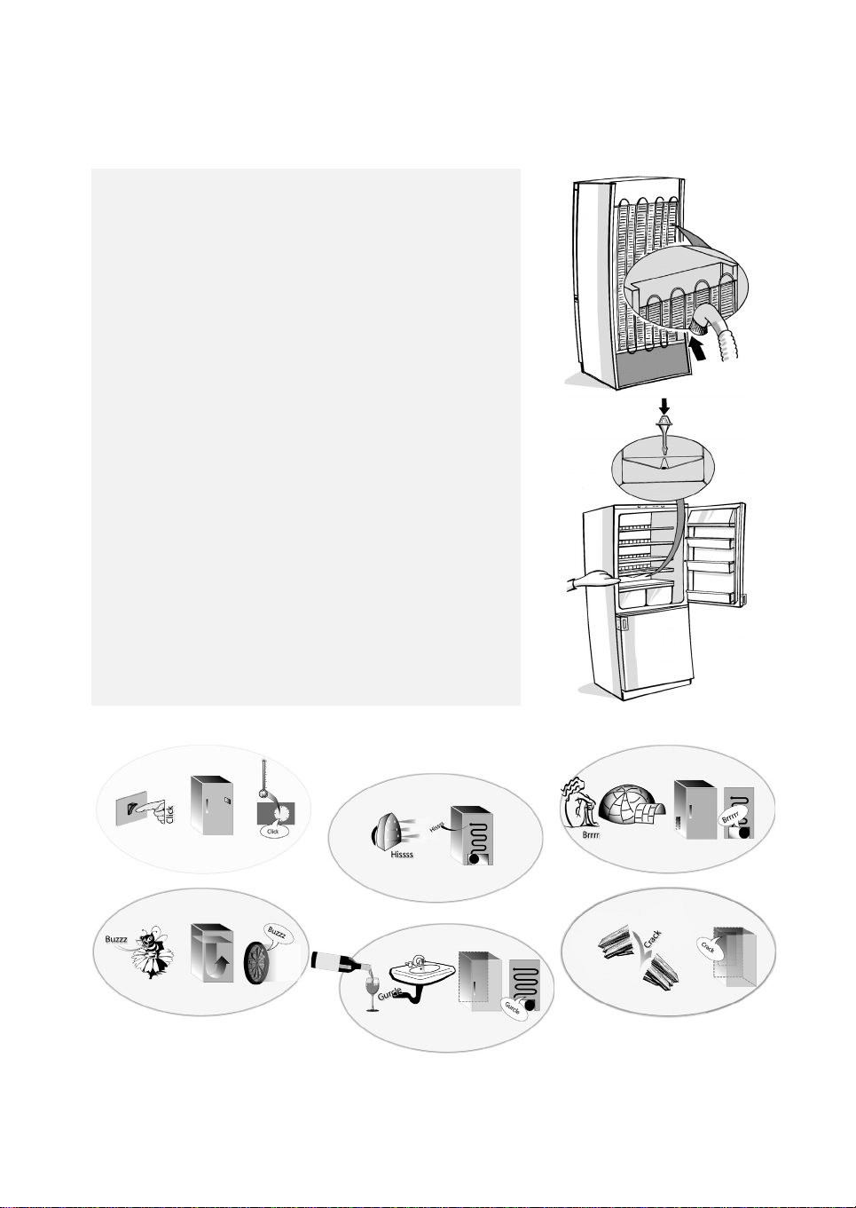 Visse lyde er helt normale, når køle-/fryseskabet er i drift.