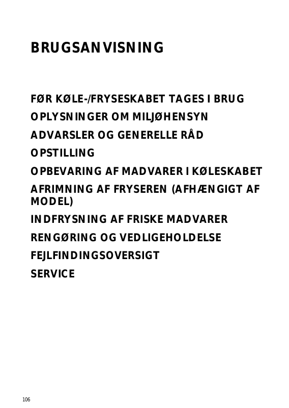 FØR KØLE-/FRYSESKABET TAGES I BRUG