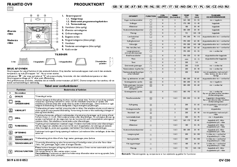 Til tilberedning af tærter med fyld, pizza på en eller to ribber. Det anbefales at bytte om på retterne,