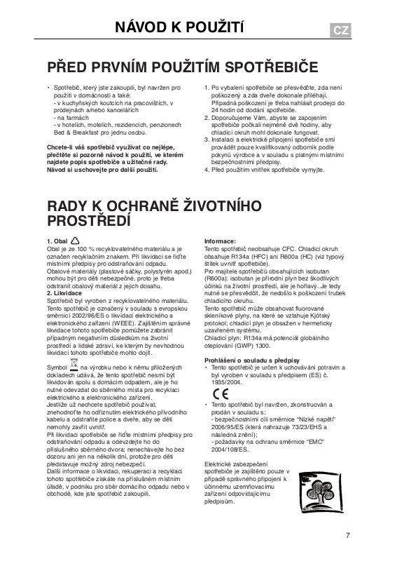 nutné chladničku odpojovat od elektrické sítě.