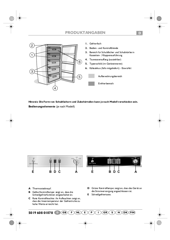 Hinweis: Die Form von Schubfächern und Zubehörteilen kann je nach Modell verschieden sein.