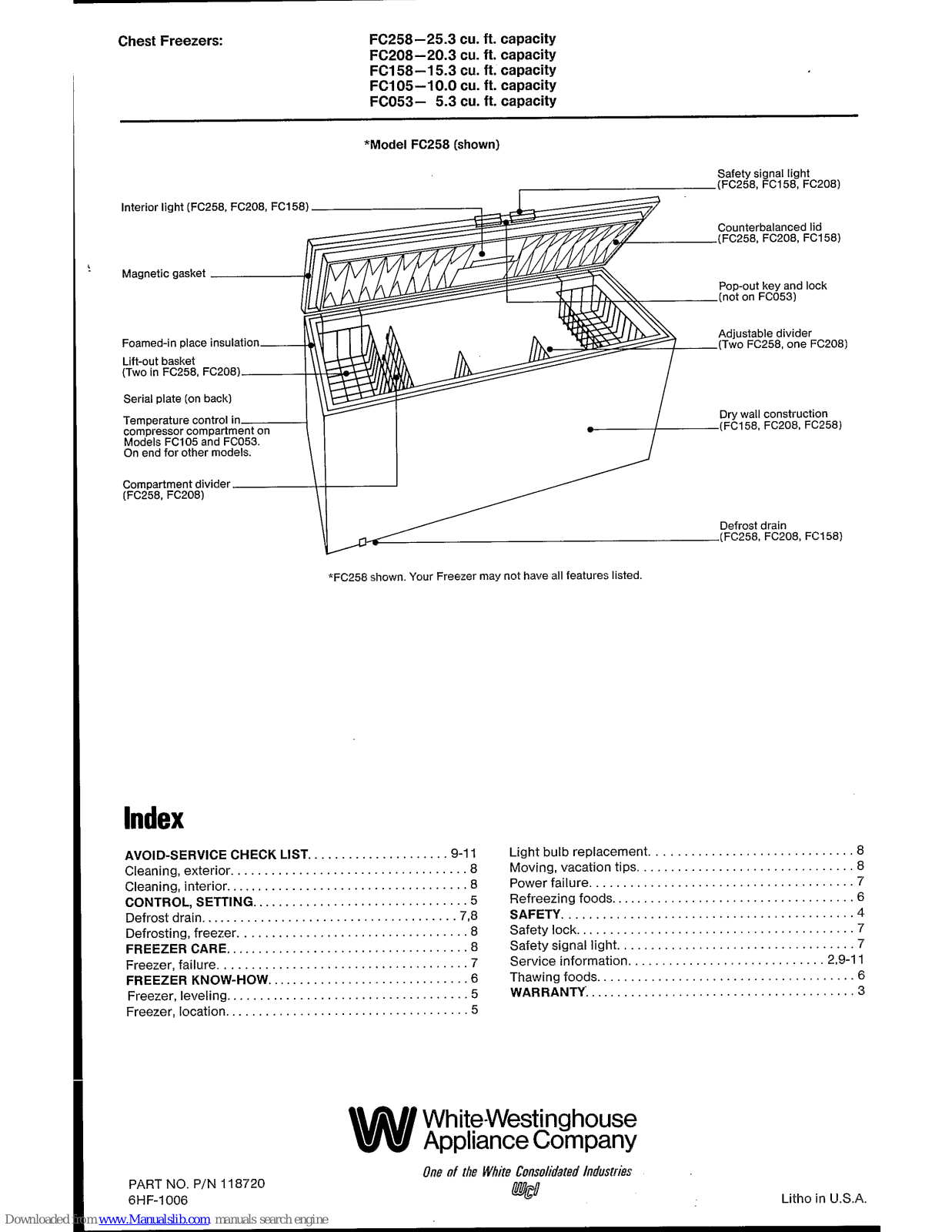 White-Westinghouse FC258, FC158, FC208, FC105, FC053 Owner's Manual