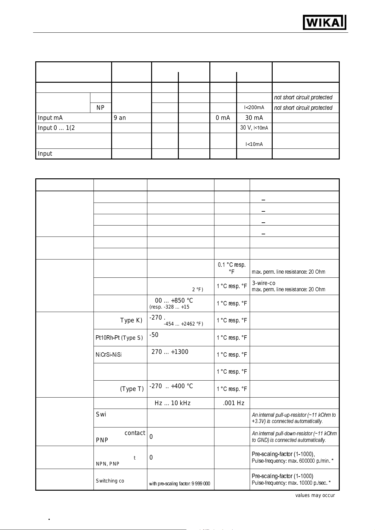 Input: 0 ... 50mV, thermocouples, Pt100