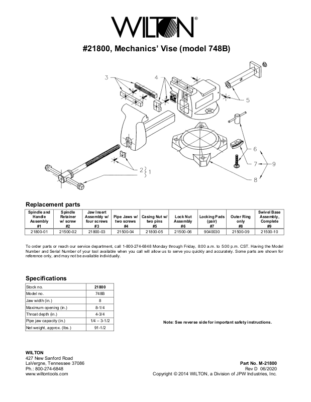 www.wiltontools.com Copyright © 2014 WILTON, a Division of JPW Industries, Inc.