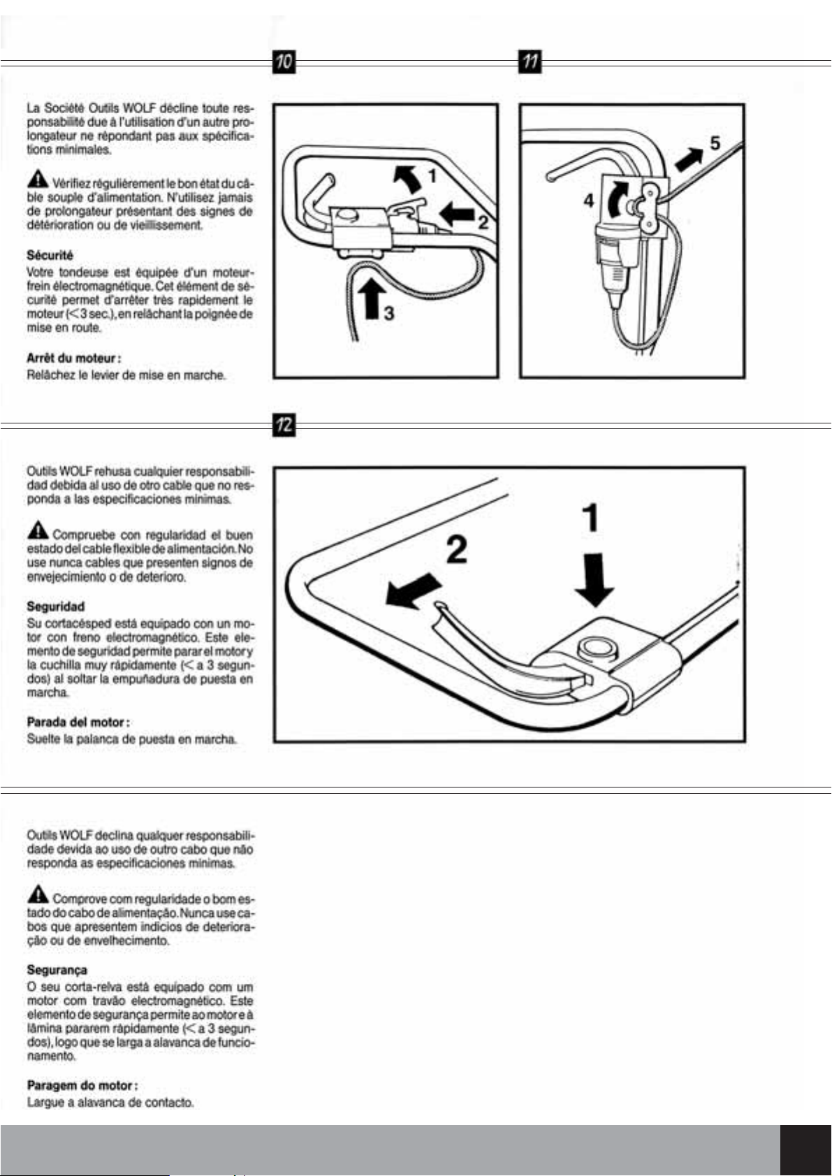 de la lame de coupe. En cas de coupure du câble, le débrancher immédiatement de la prise de courant.