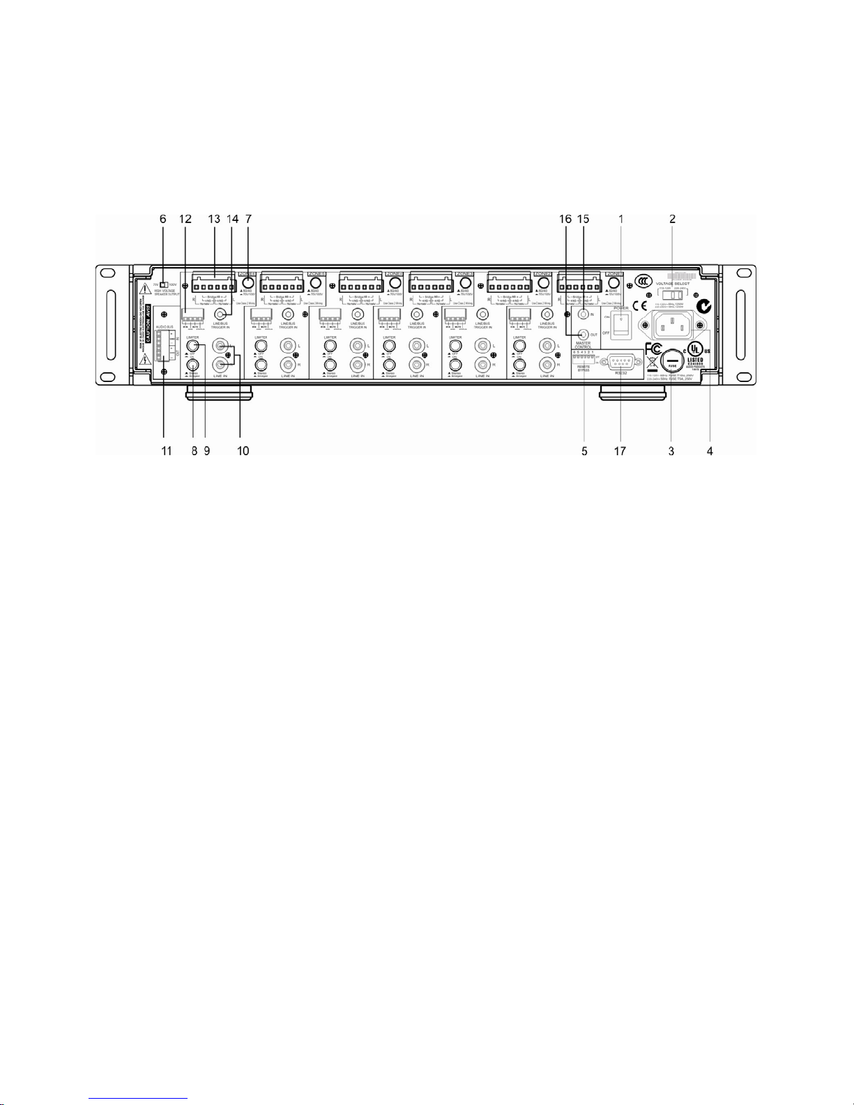 10. Ch Line Input: These inputs allow connection of sources directly to the individual channels. This input allows Stereo, line -level