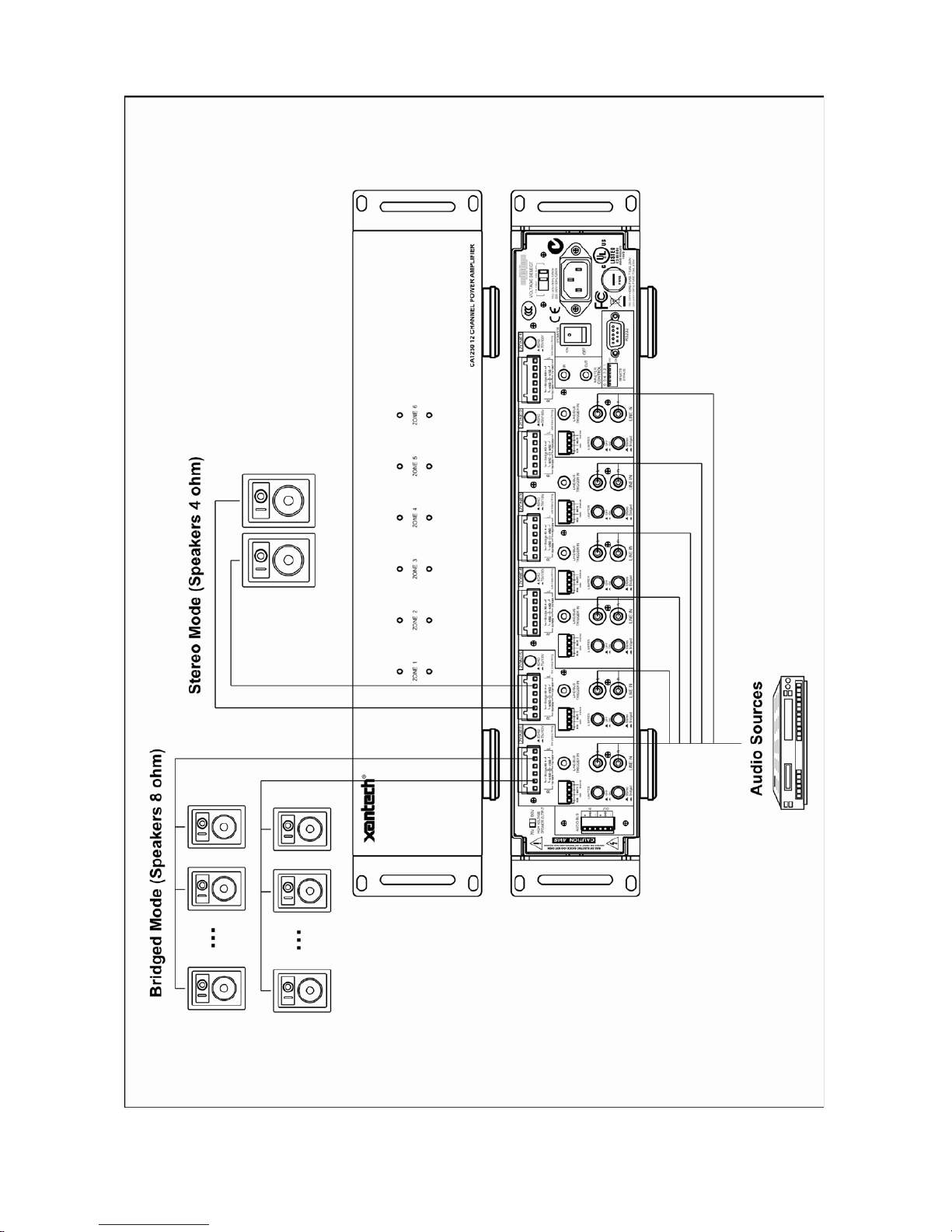 source or two separate mono audio sources. If you Bridge the Zone’s pair of amplifiers into an 8-ohm speaker circuit, use the