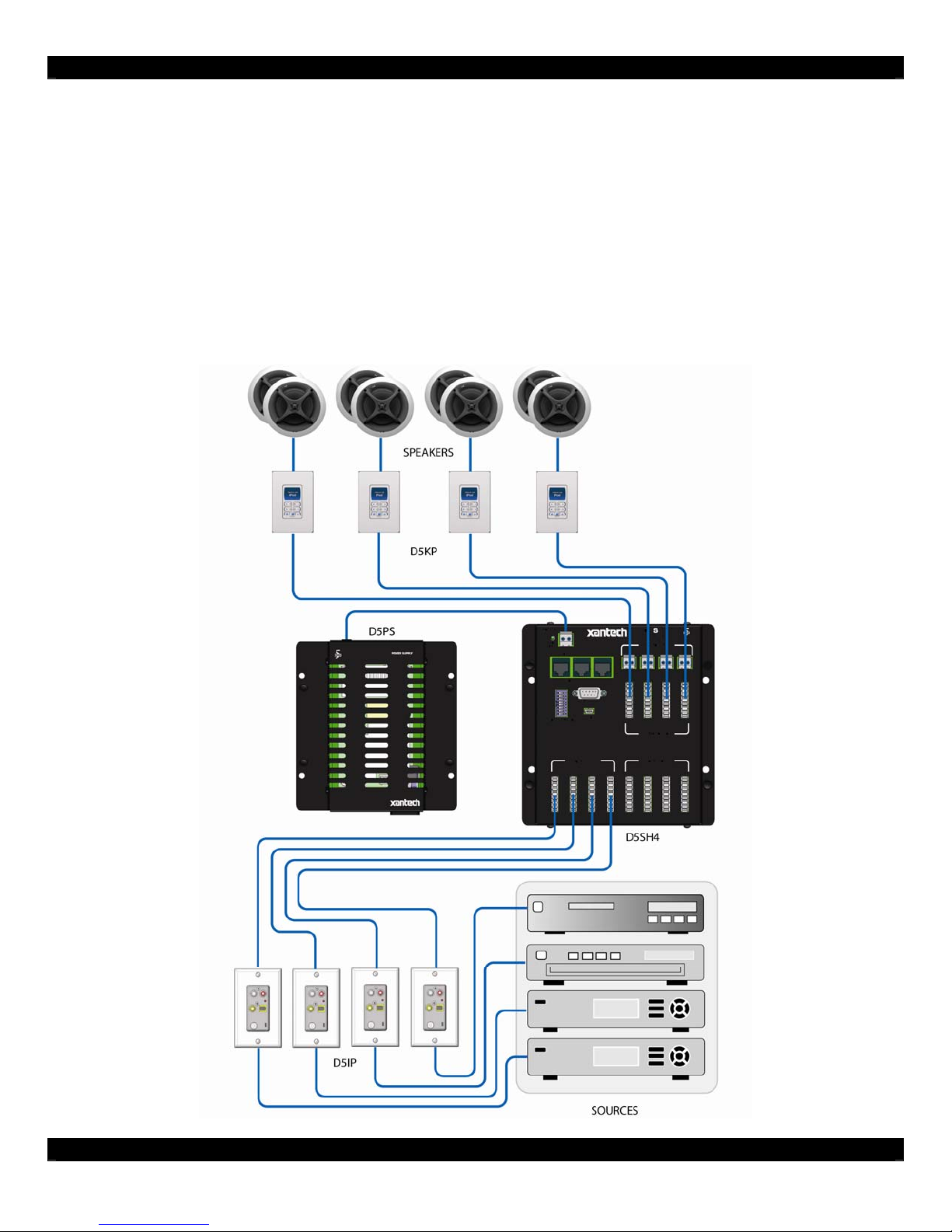 audio distribution system. Additionally, the D5SH4 has the capability to expand to additional zones