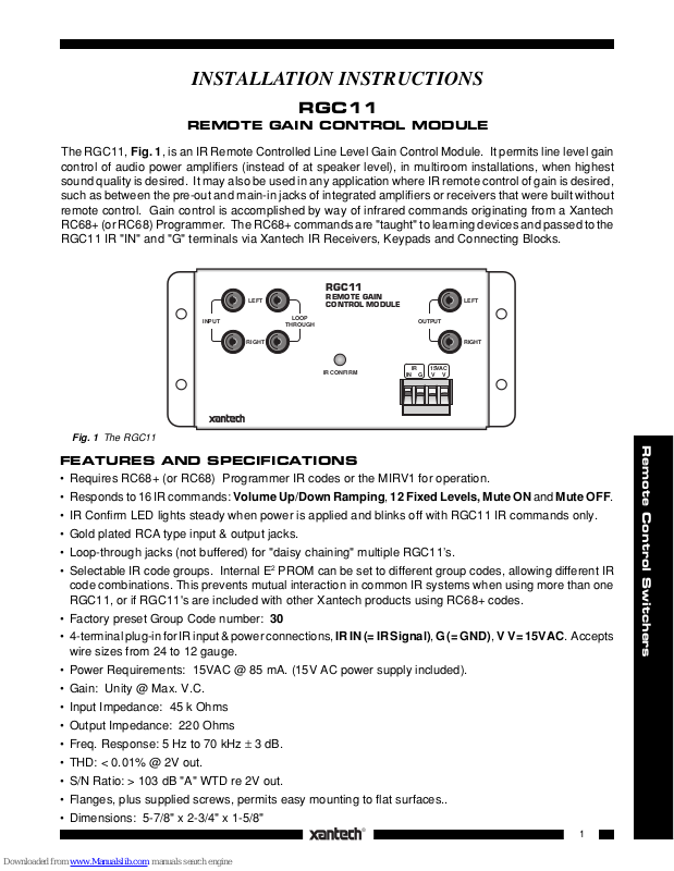 remote control. Gain control is accomplished by way of infrared commands originating from a Xantech