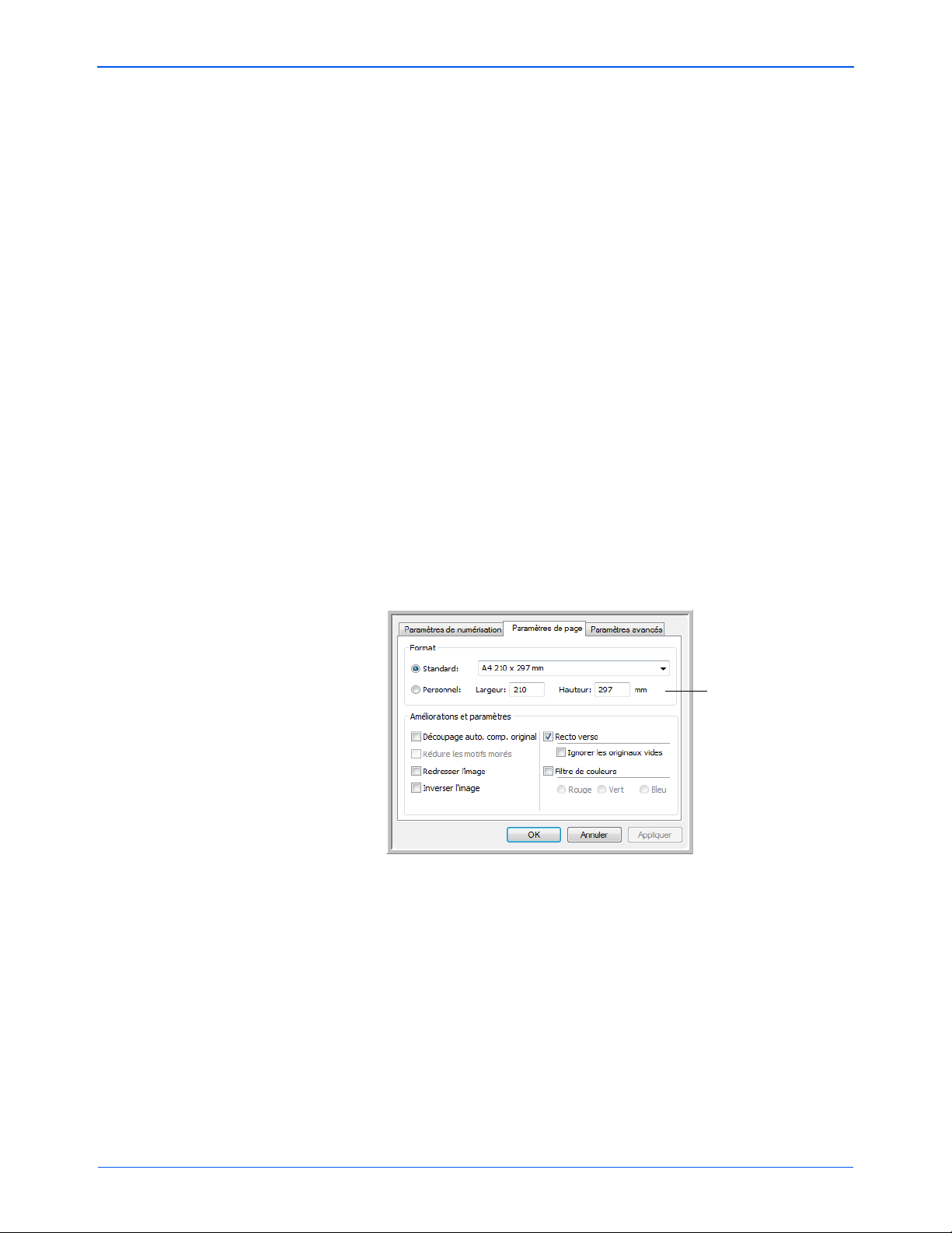 laquelle vous pouvez sélectionner une taille de page spécifique.