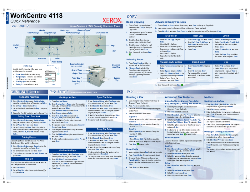 WORKCENTRE 4118X (4-IN-1) CONTROL PANEL