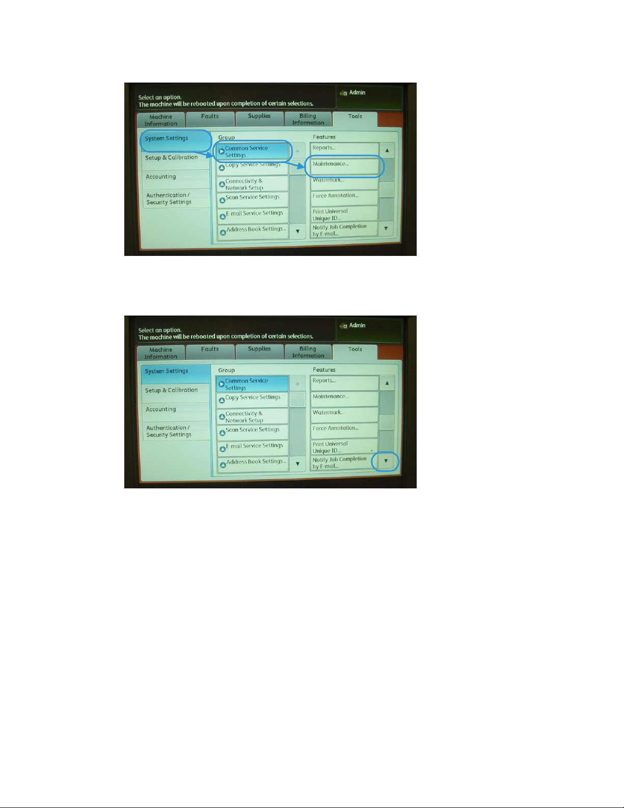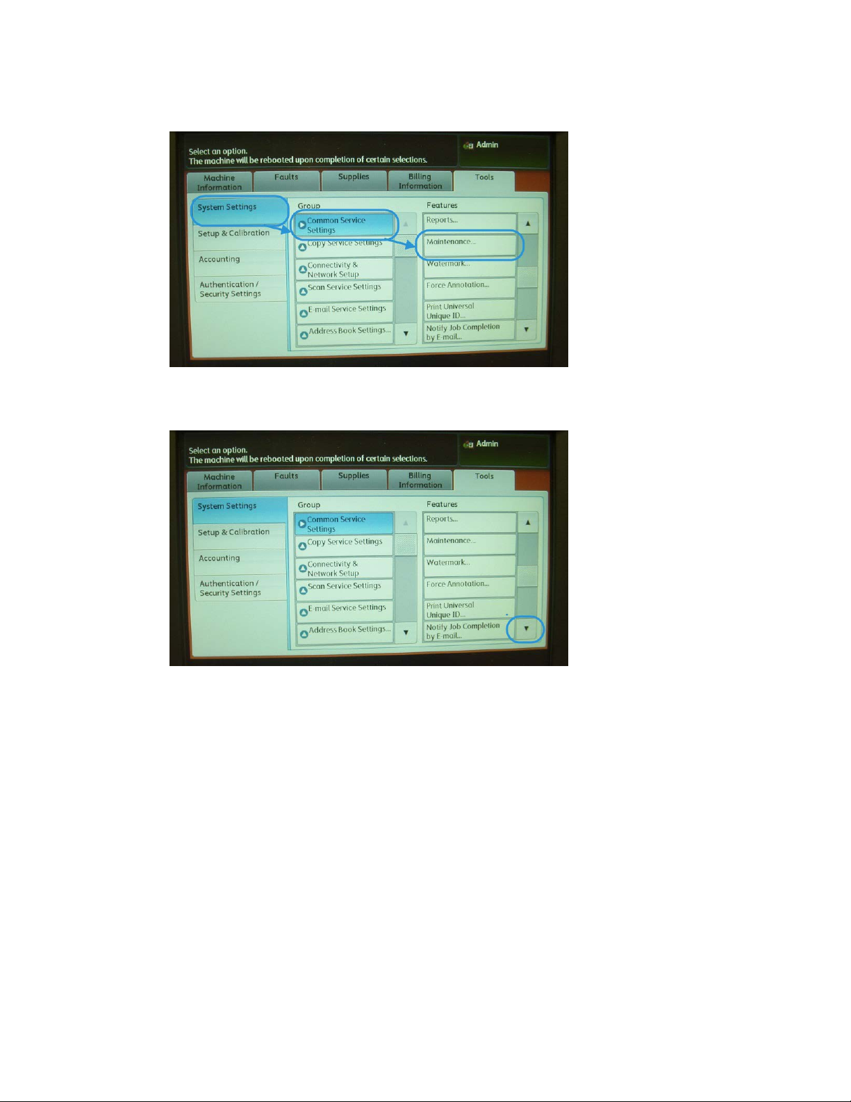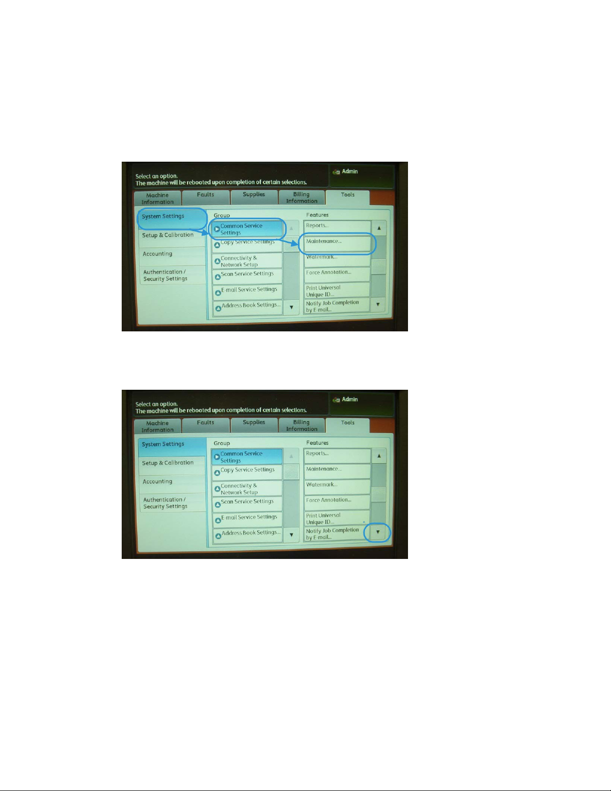 6. Using the down button, scroll to the next Maintenance page/screen.