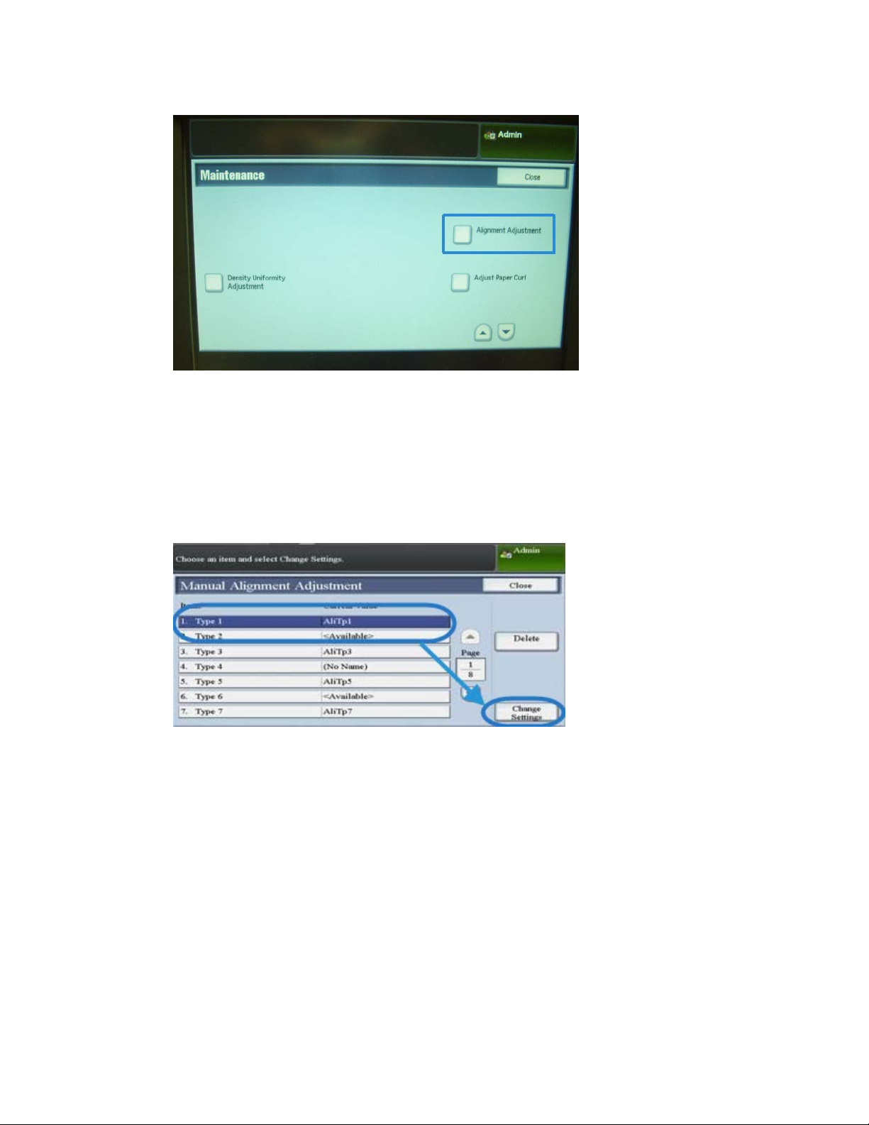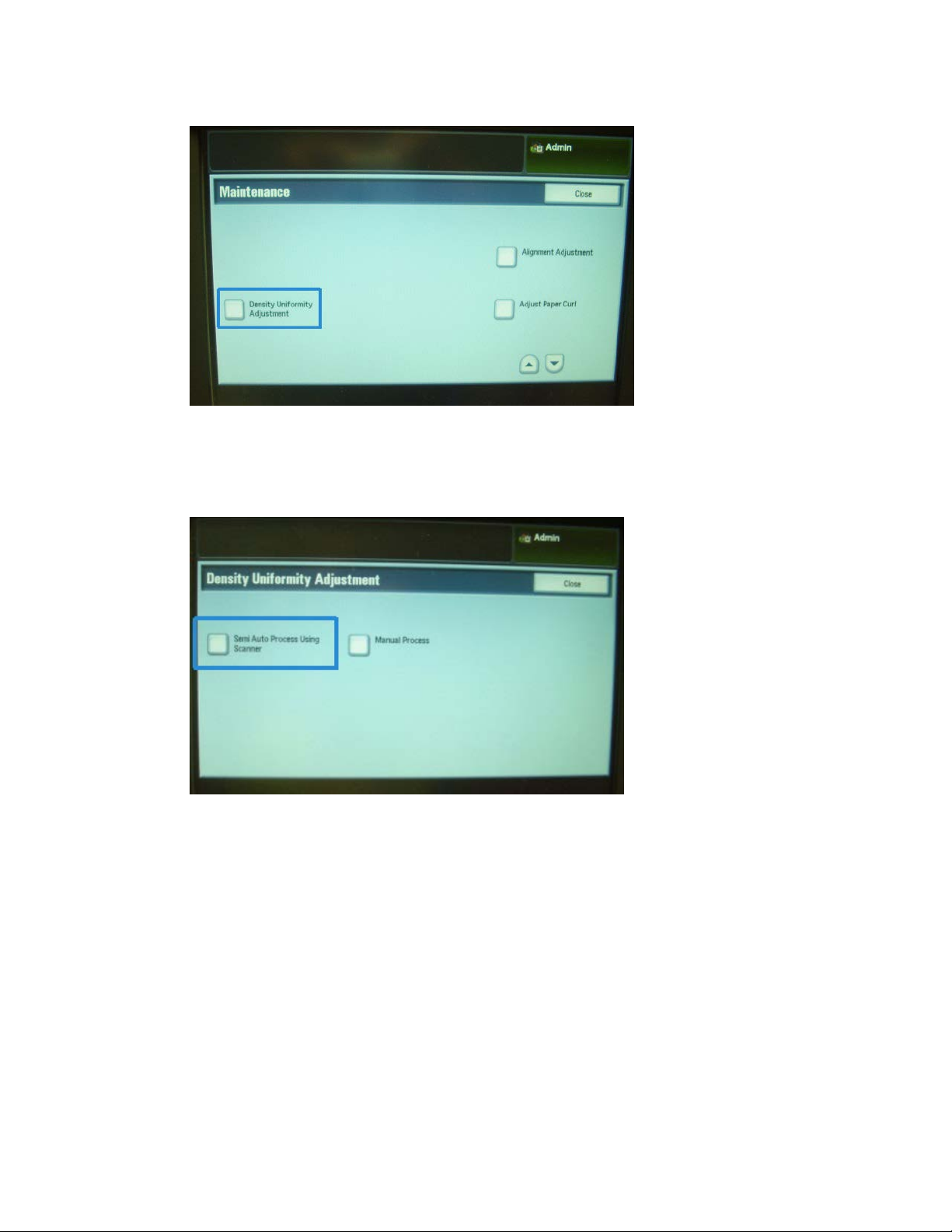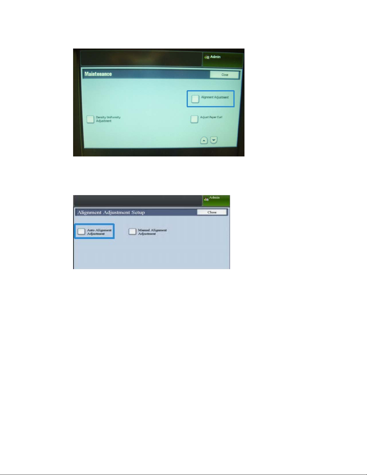 Alignment Adjustment and Density Uniformity Adjustment procedures.