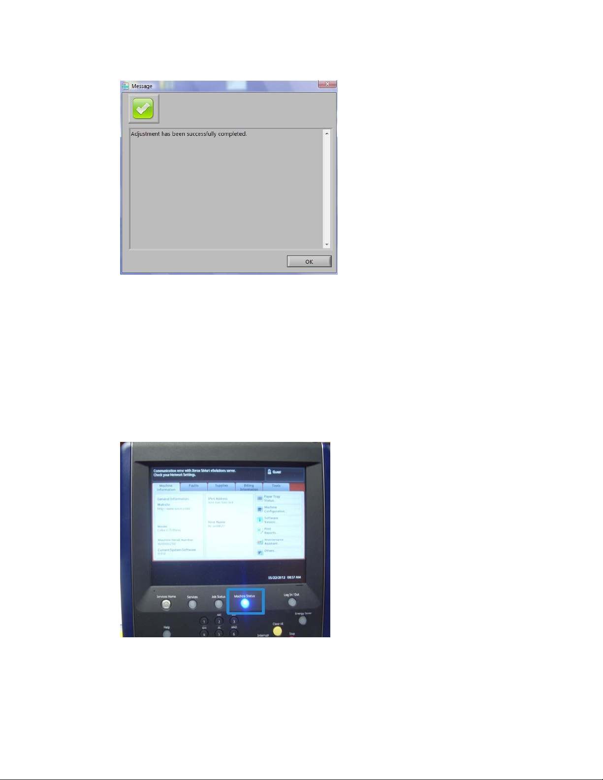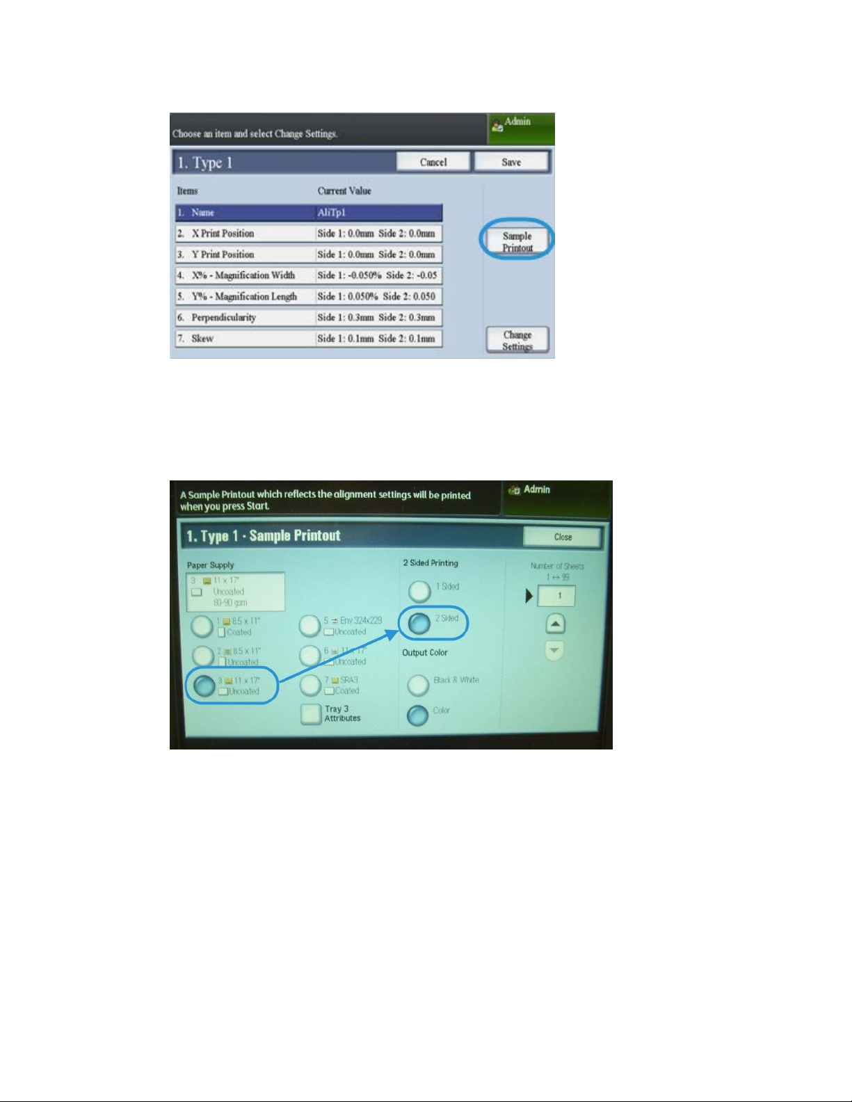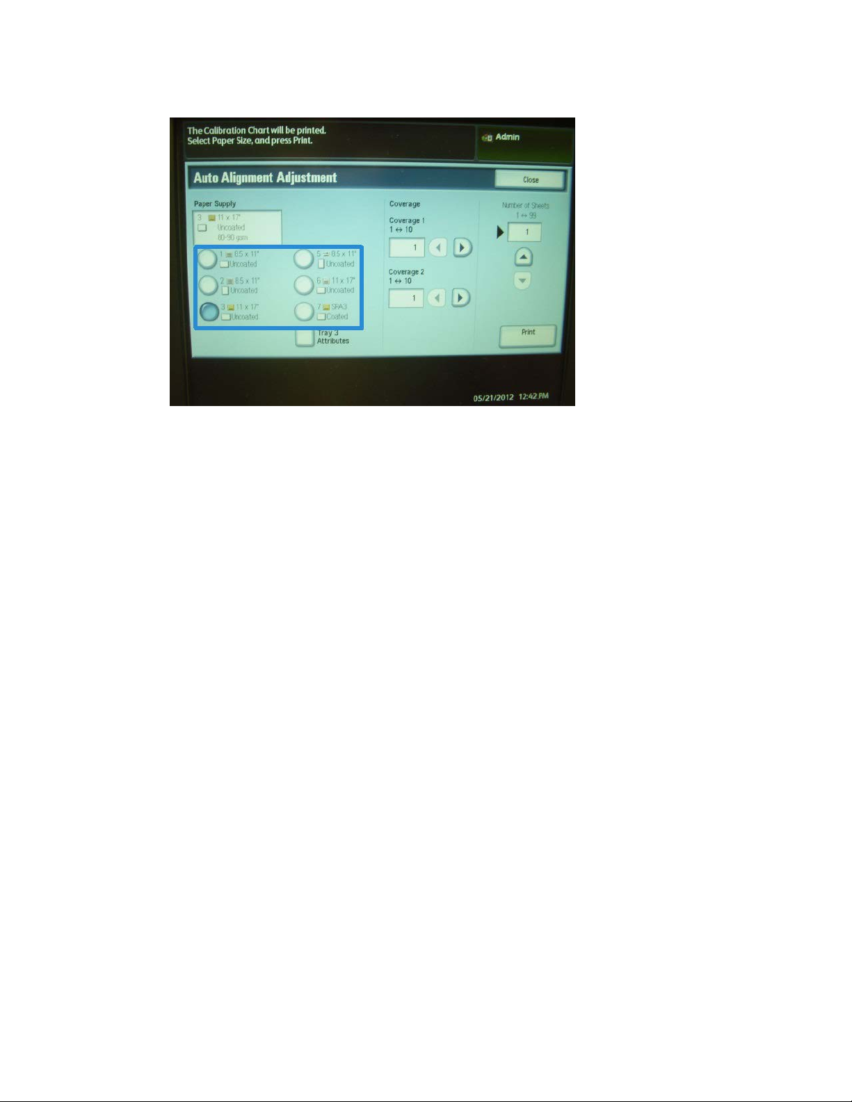 11. Retrieve the two printed test patterns and return to the machine’s UI.