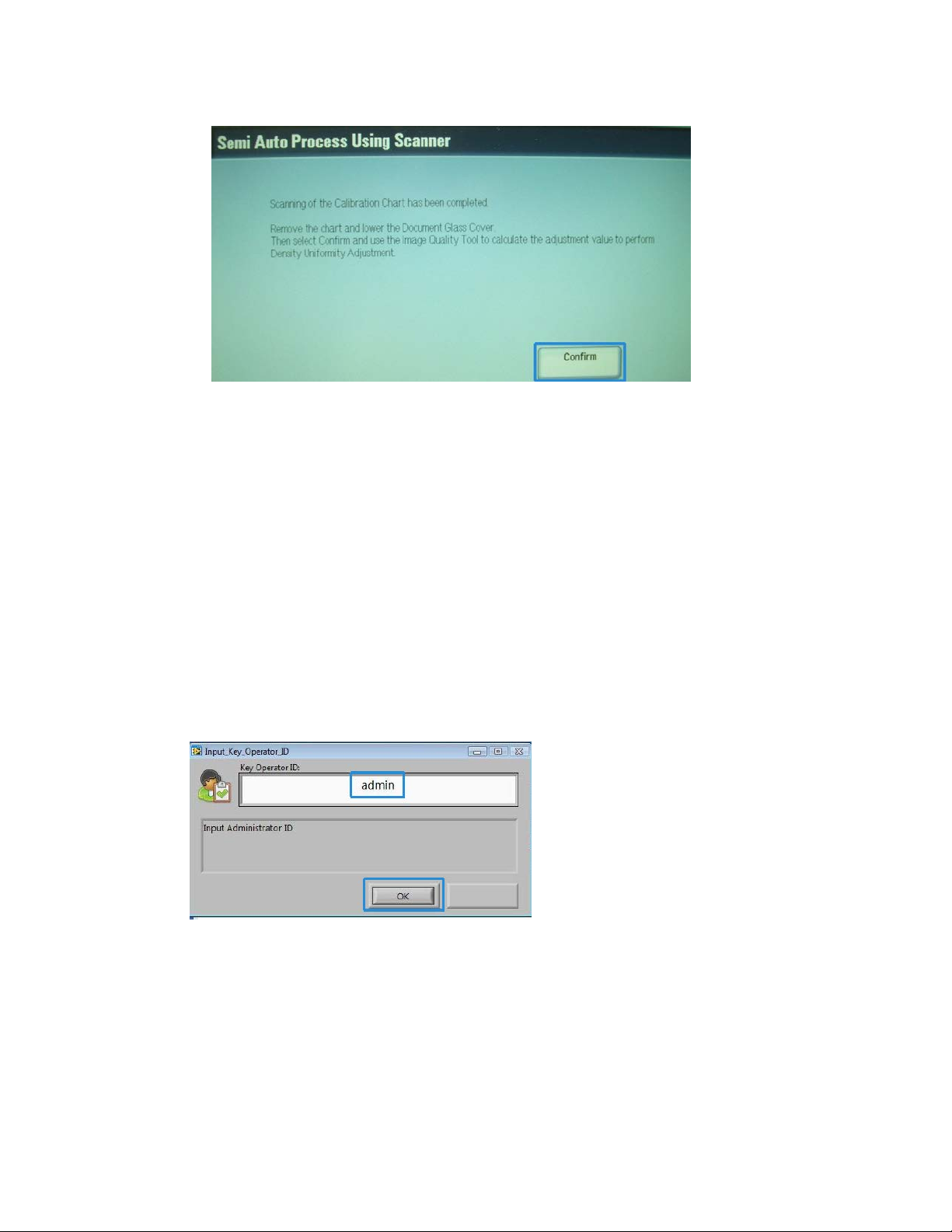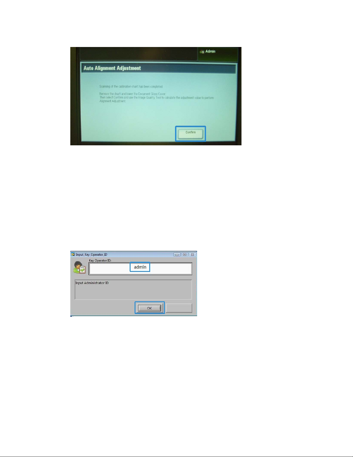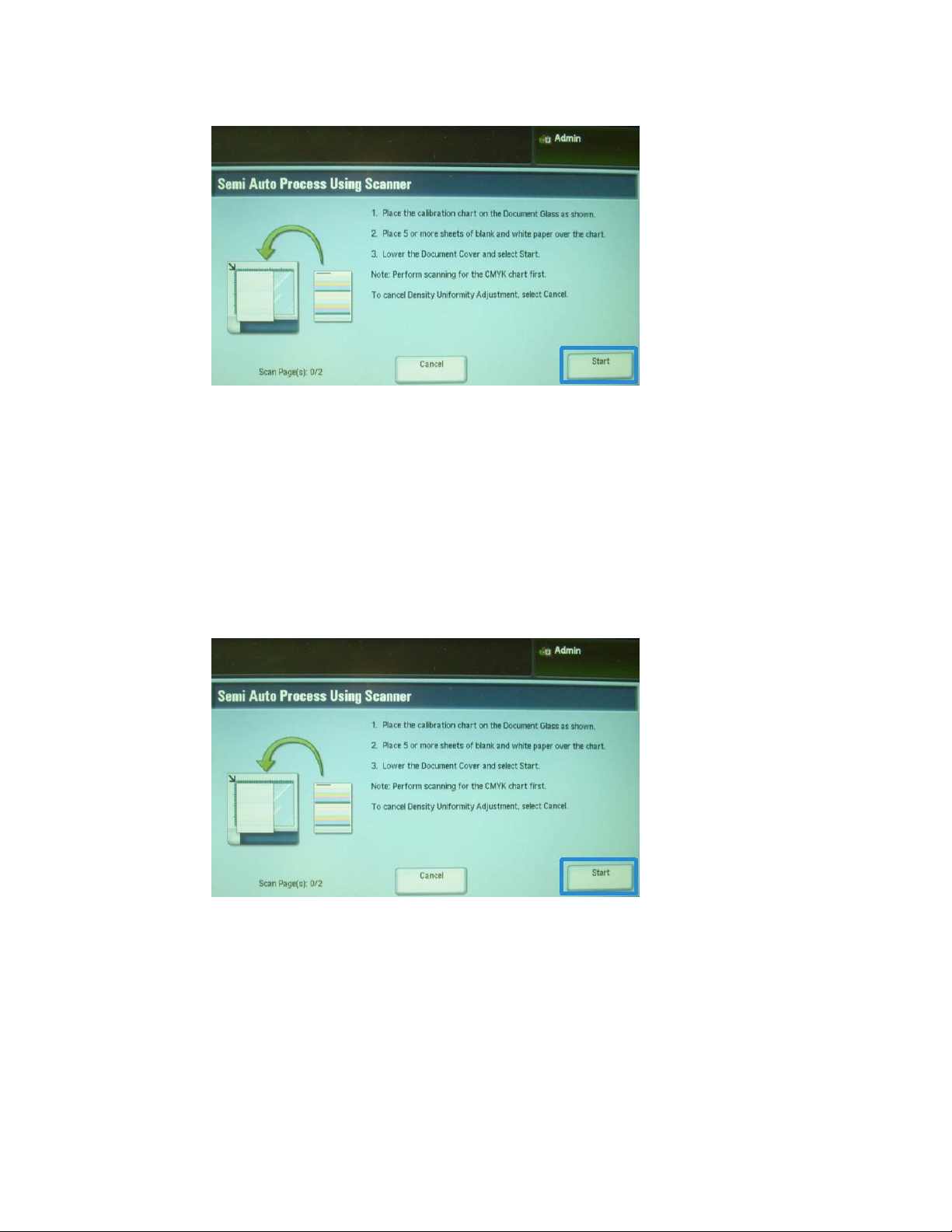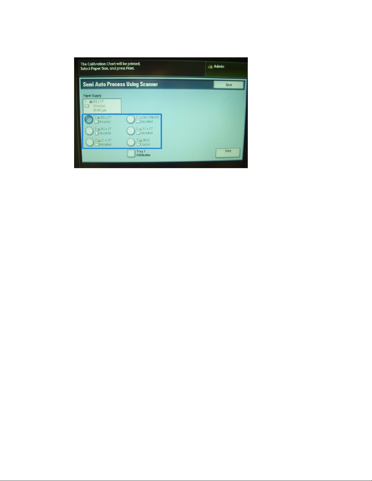 11. Retrieve the two printed test patterns and return to the machine’s UI.