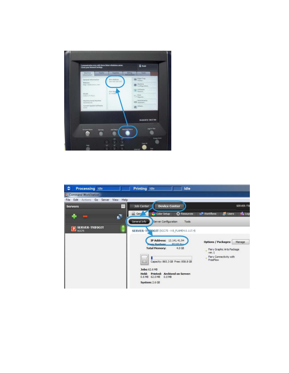 2. From the EX Print Server locate the print server IP address by selecting Command
