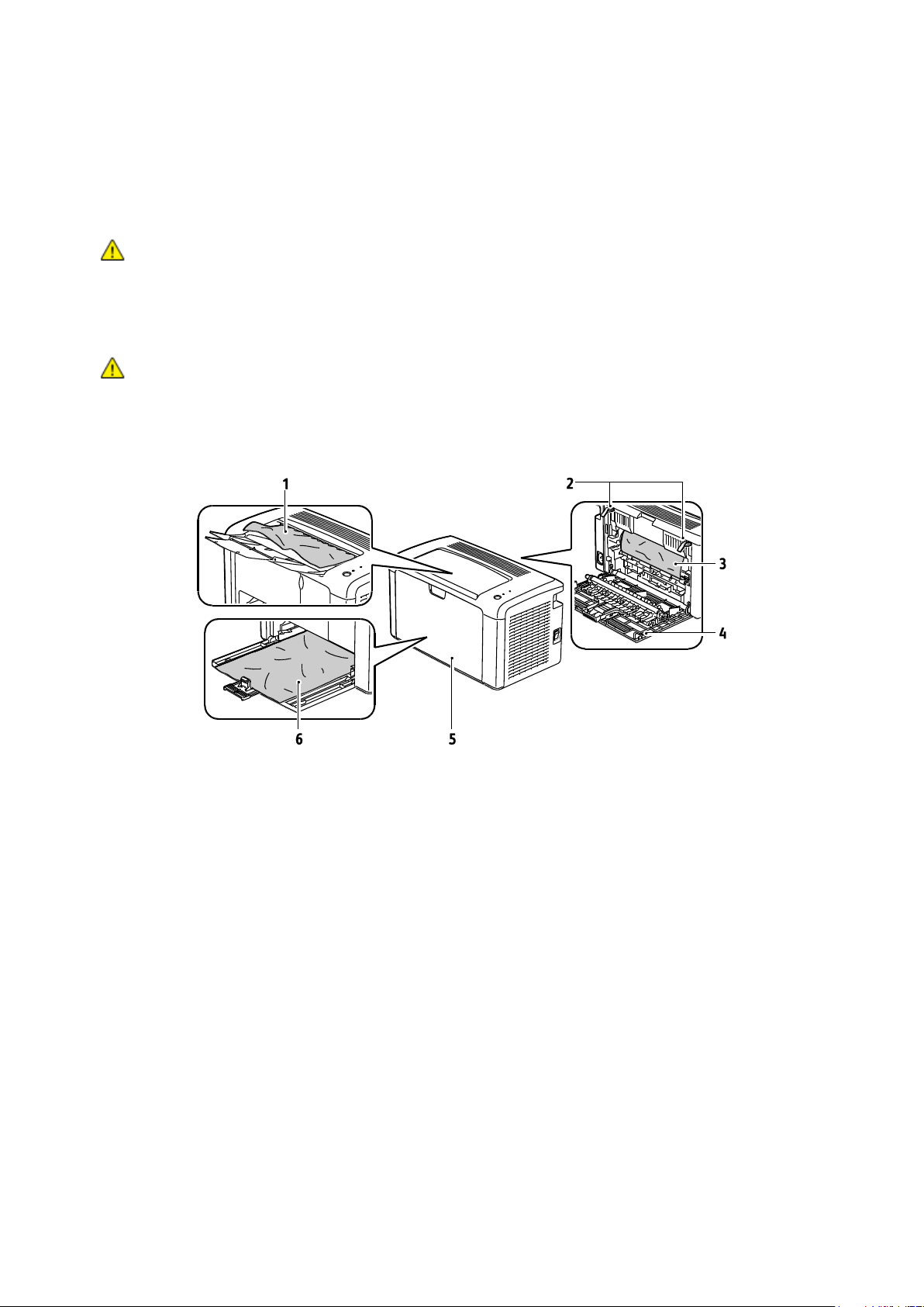 Duw geen objecten in sleuven of openingen van de printer. Aanraking van een
