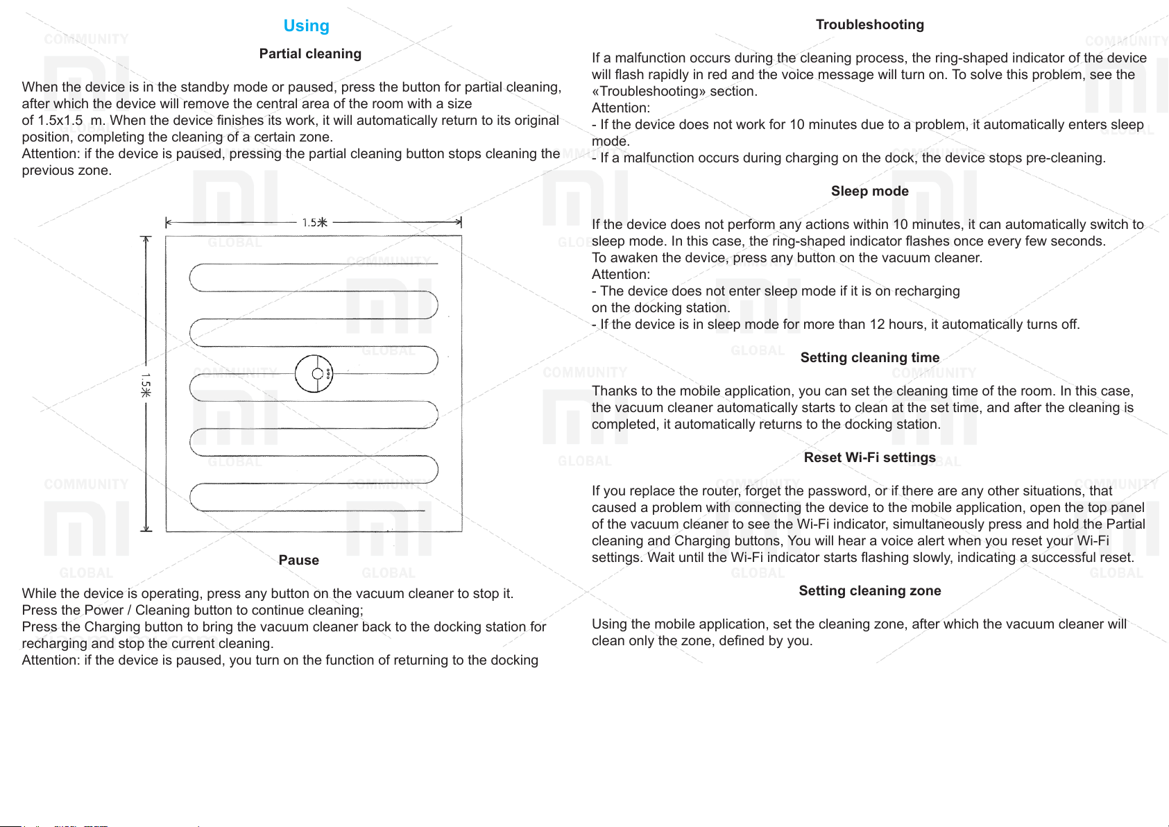 Note: during cleaning, charging or partial cleaning, press any button to pause the device.
