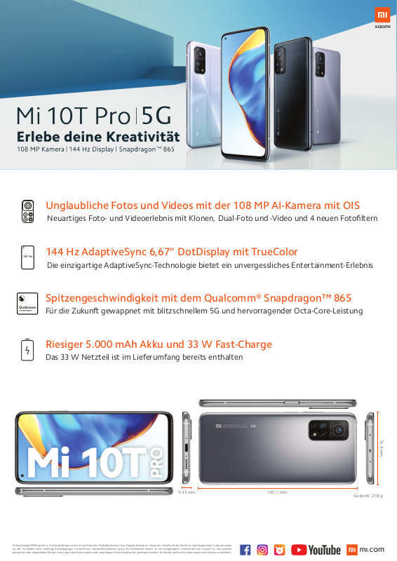 Display des Mi 10T Pro garantiert dir so ein perfektes Erlebnis bei optimaler Akkunutzung. Unser