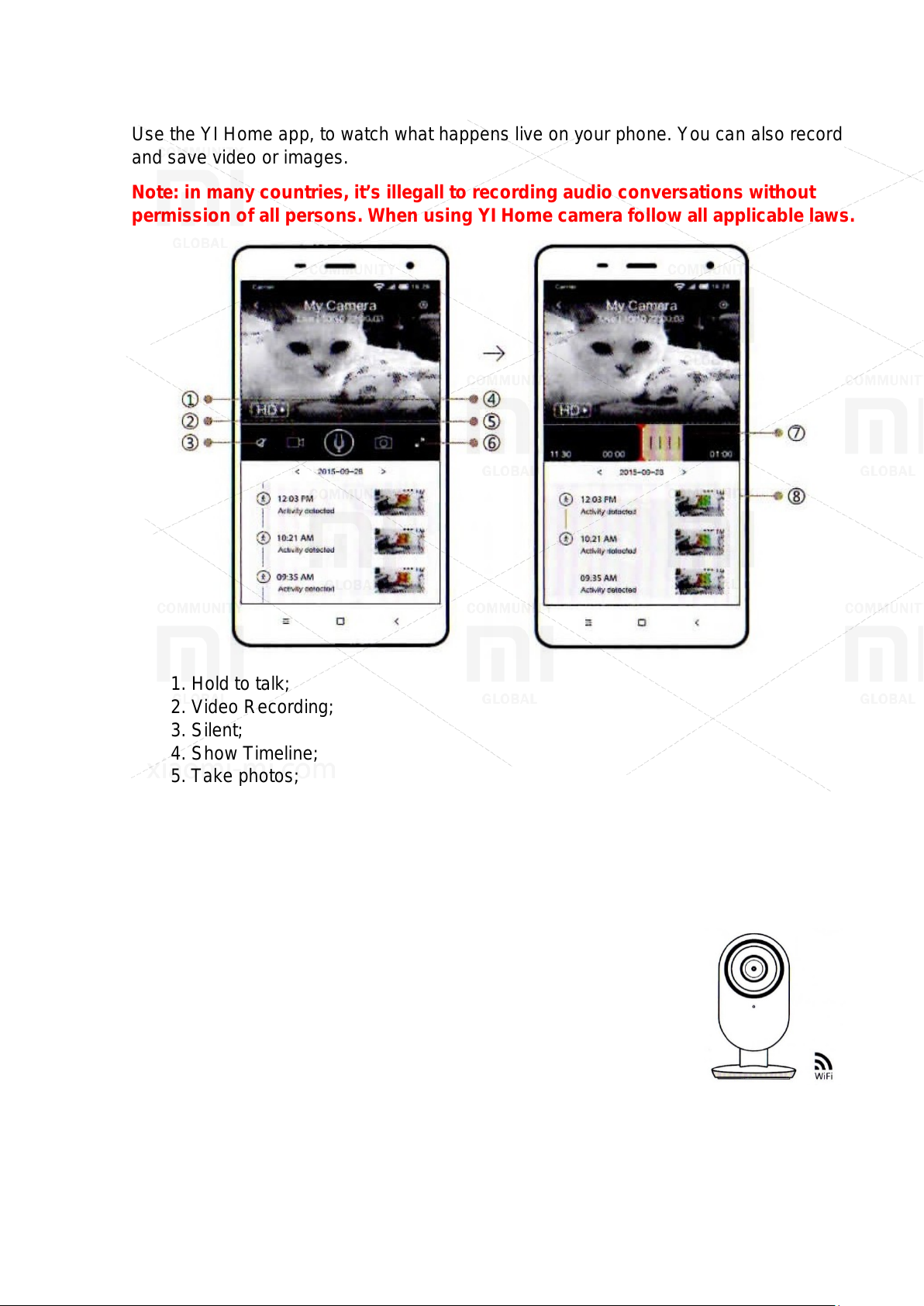Note:in manycountries,it’sillegalltorecordingaudio conversations withoutpermissionofallpersons.When using YIHomecamera followallapplicablelaws.