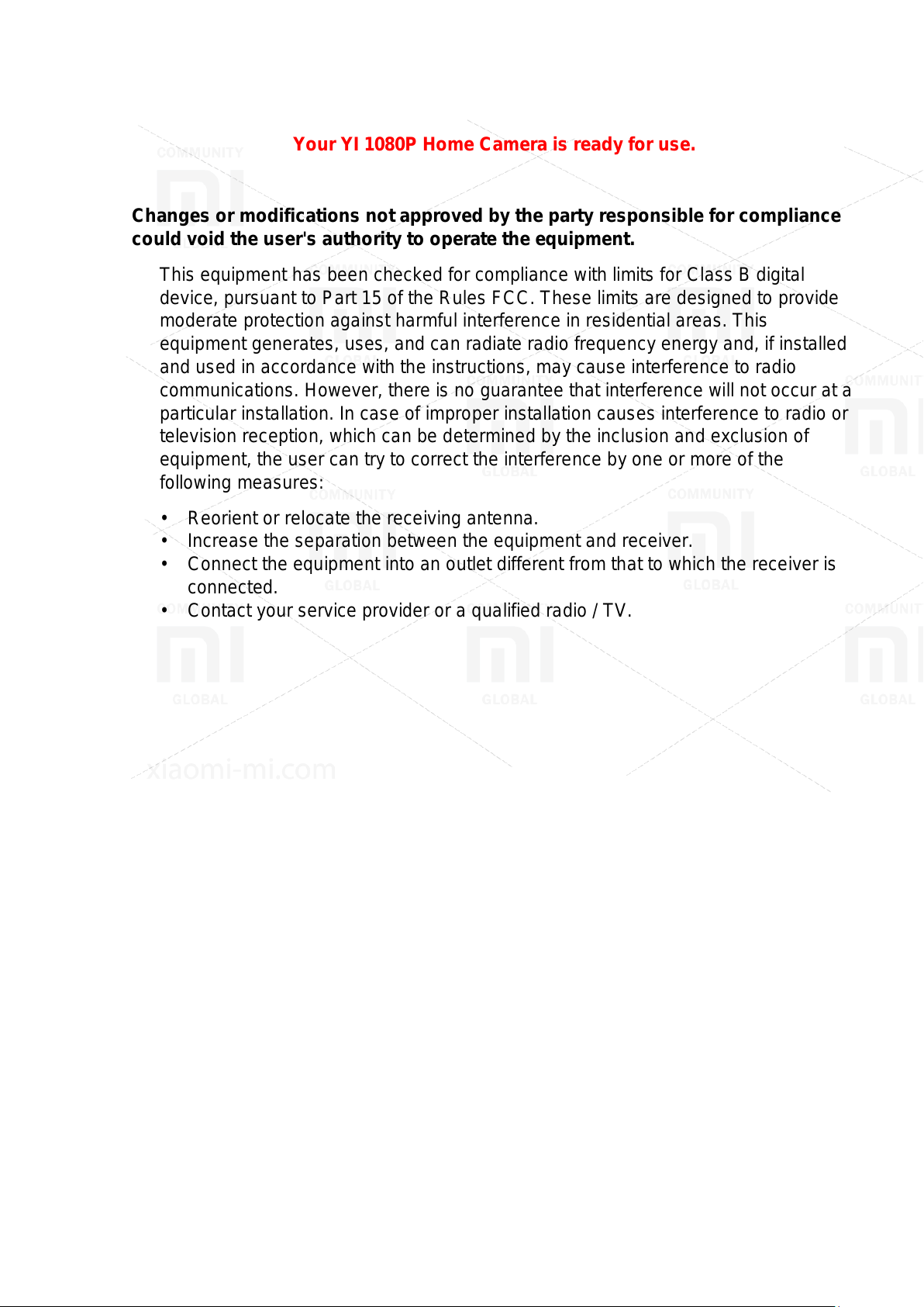 "Xiaomi" and "YI" logo are trademarks of S hanghai Xiaoyi Technology Co., Ltd.