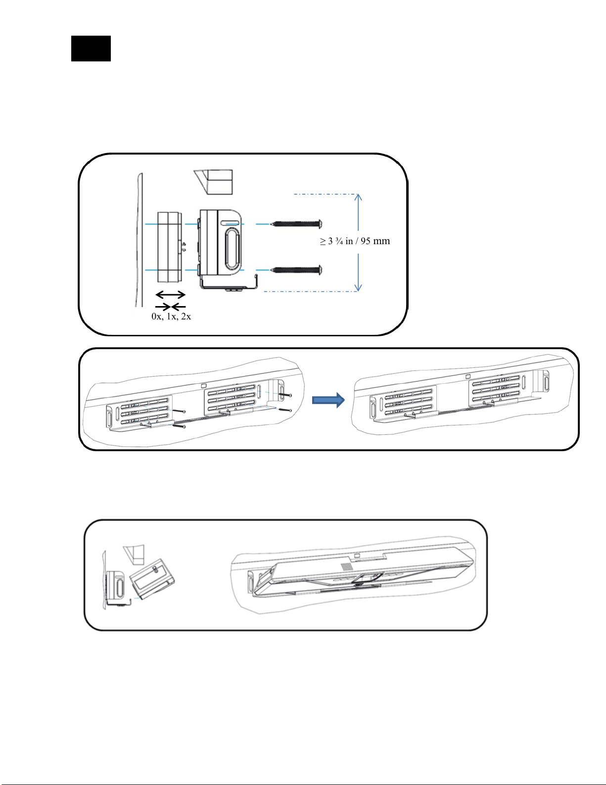 appropriate number of spacers (0-2) on each side. Maximum mounting height is 2m / 6’ 8” from the floor. Always