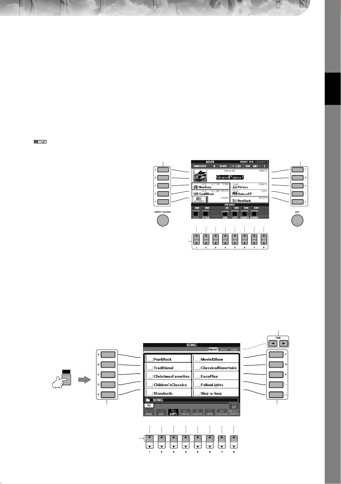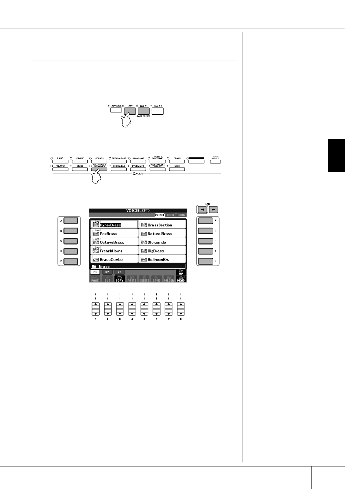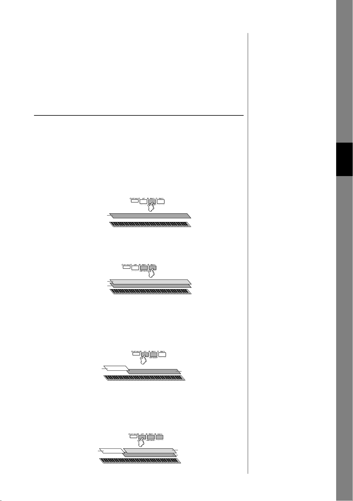 secciones del teclado: la sección de acordes, la sección de la parte LEFT